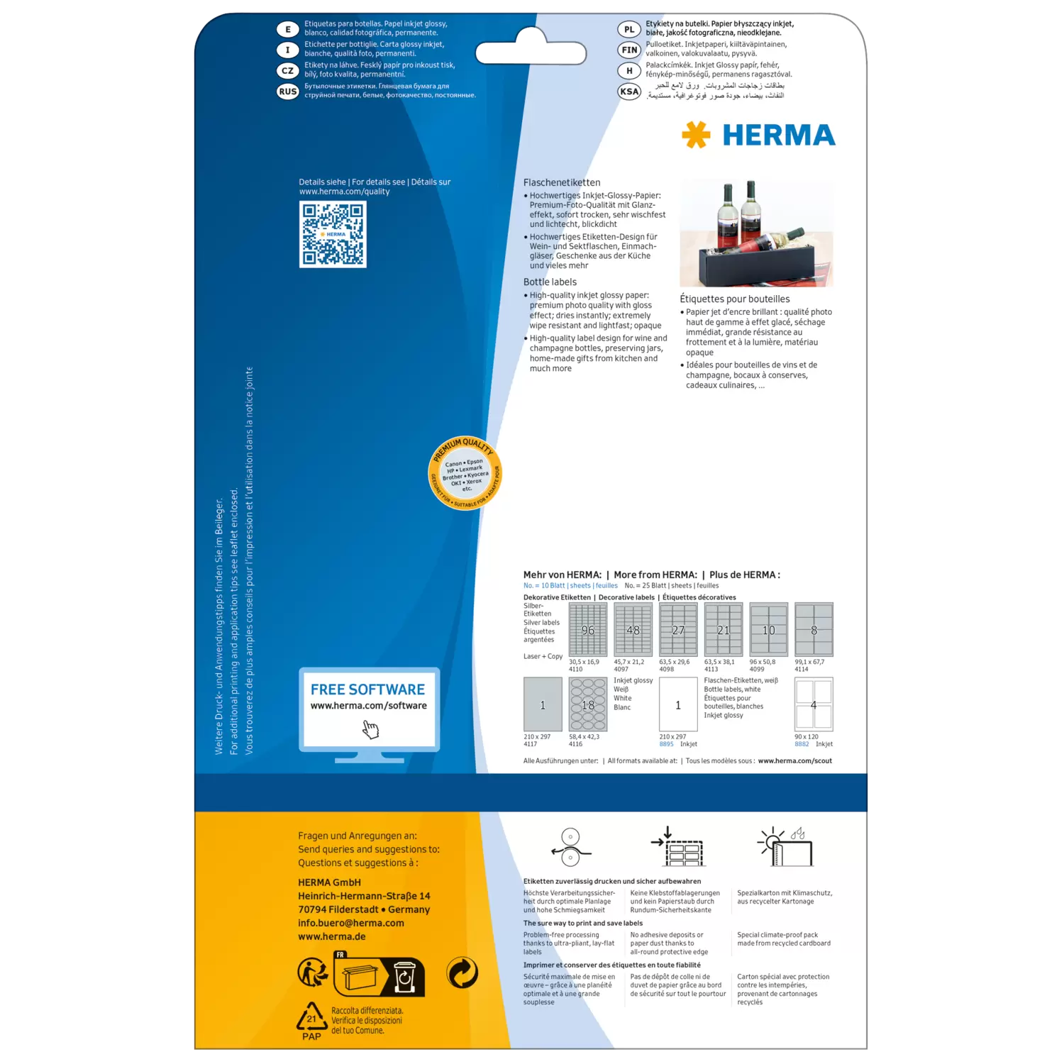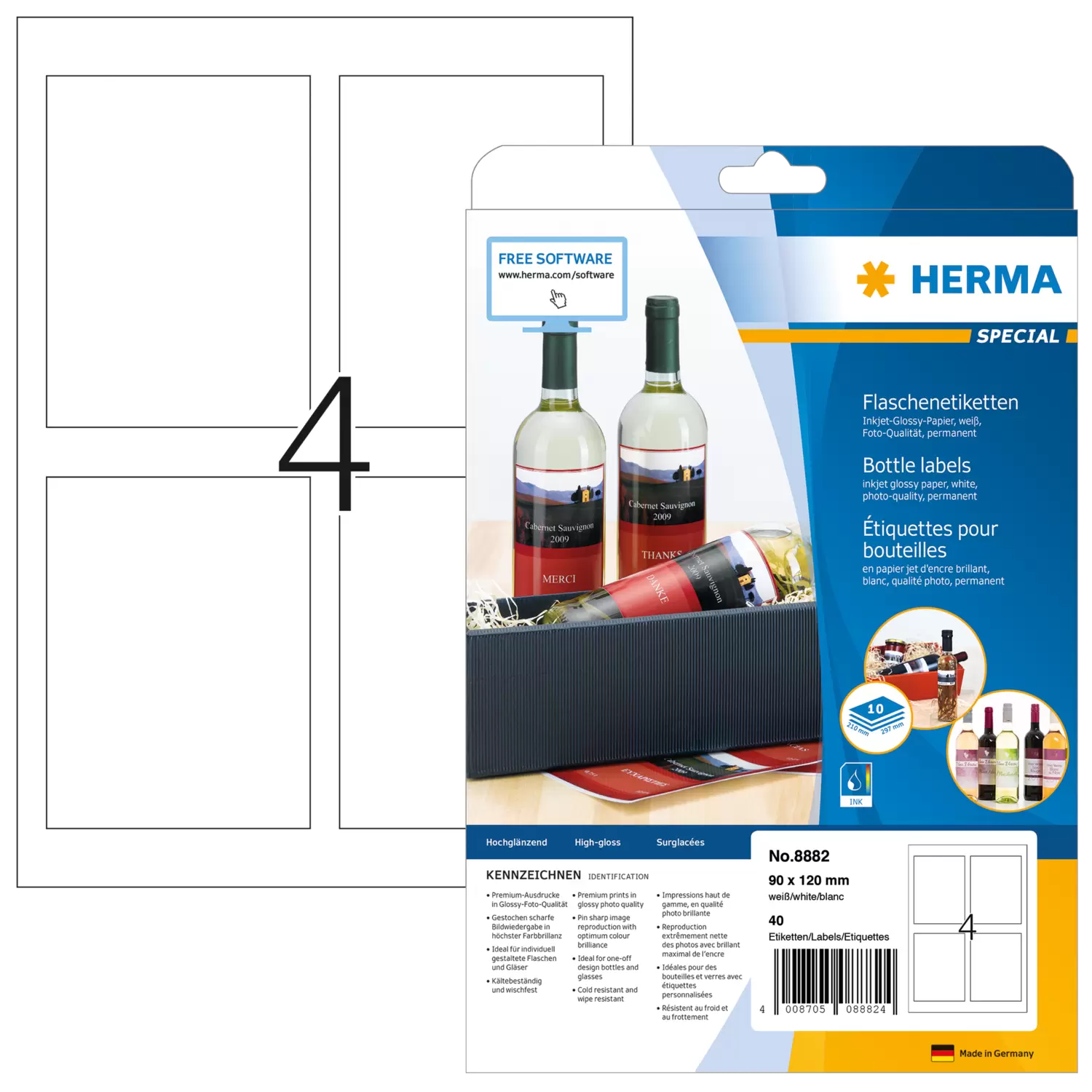 Flaschenetiketten, Inkjet, A4, 90 x 120 mm, aus Glossy-Papier, weiß, permanent haftend