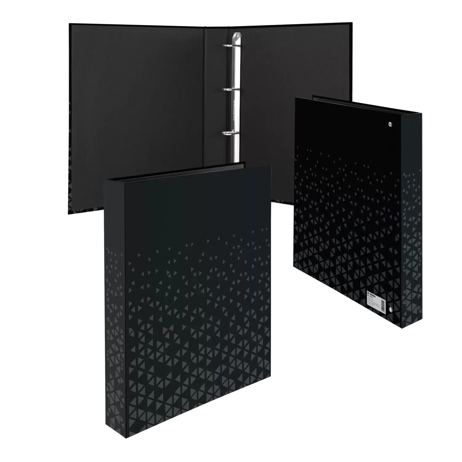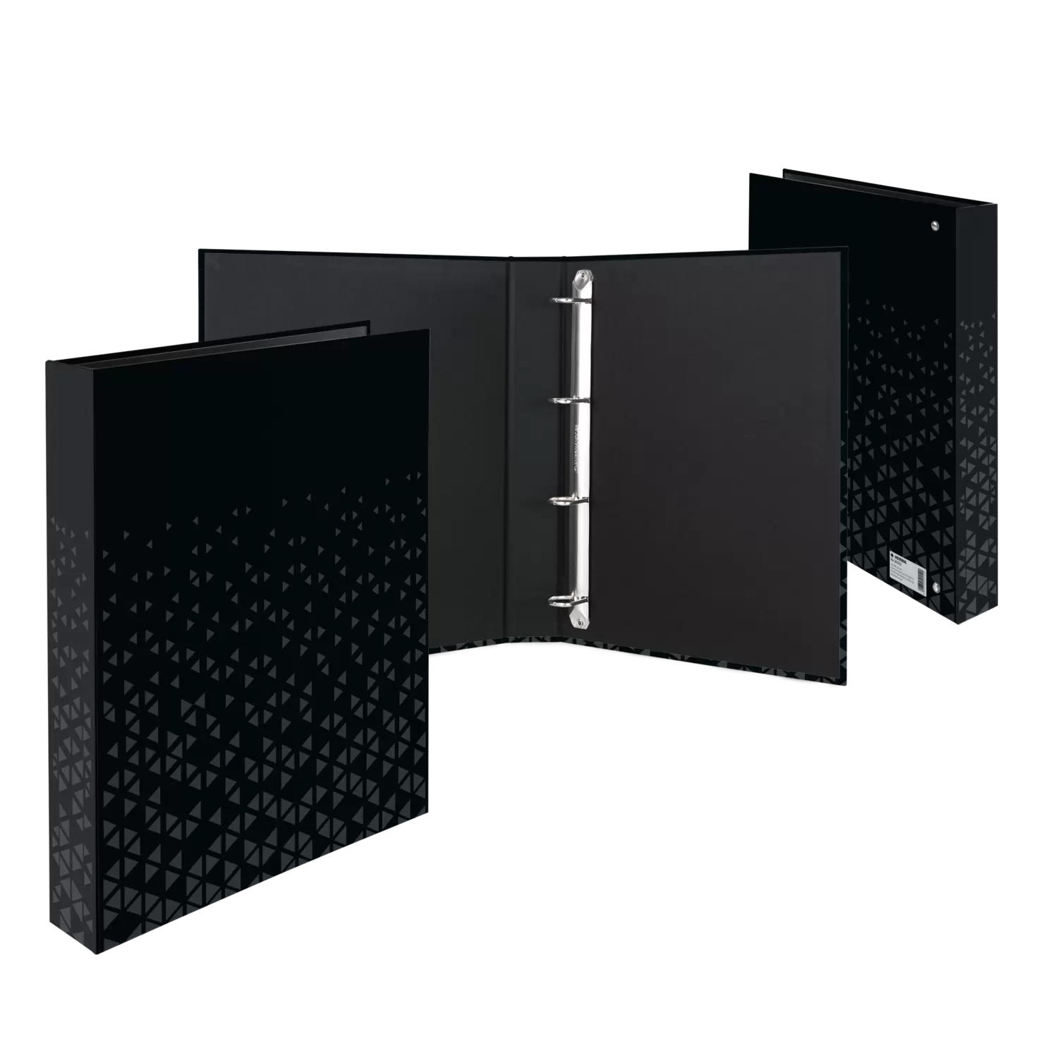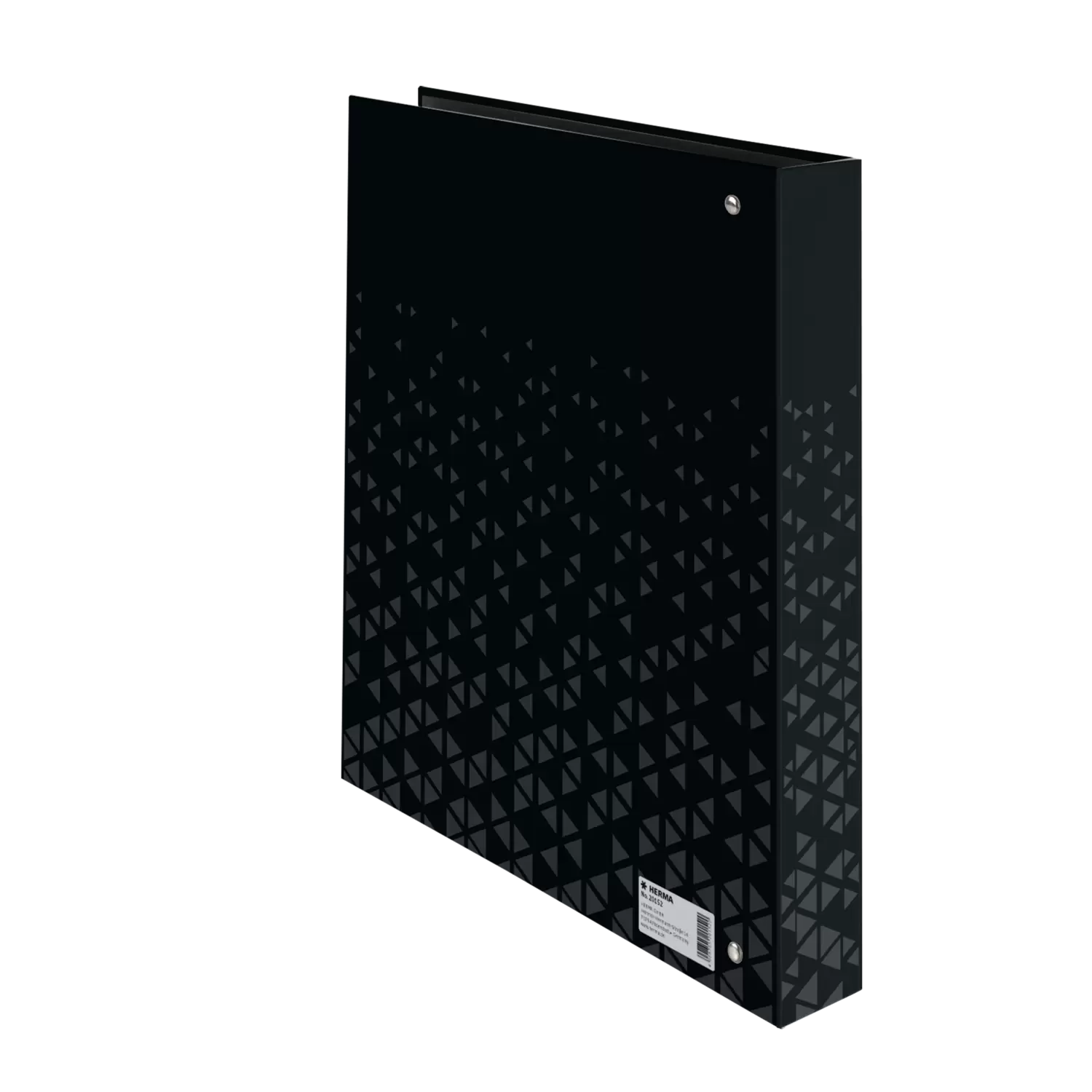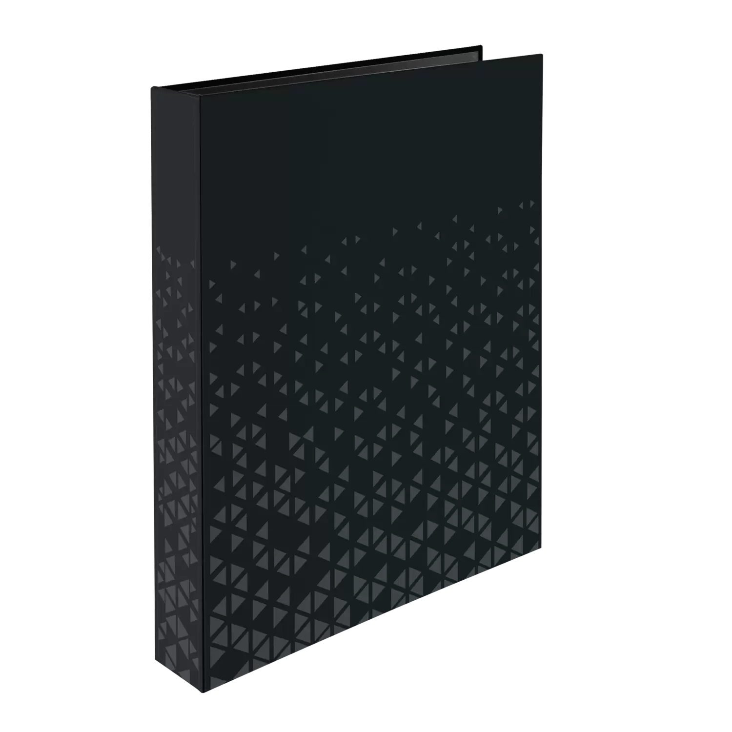 Design trifft Funktion: Das Fotobook, das Ordnung stilvoll macht! Die perfekte Wahl für alle, die Wert auf Stil und Funktionalität legen. Das folienveredelte Dreiecks-Muster in der Farbe schwarz und die samtige Softtouch-Oberfläche sorgen für ein modernes und hochwertiges Erscheinungsbild. Der stabile Karton schützt den Inhalt zuverlässig, während die 4-Ring-Mechanik ideal für Foto- und Prospekthüllen ist. Mit einer praktischen Rückenbreite von 46 mm bietet es viel Platz für Fotos und Unterlagen und wirkt dabei elegant und platzsparend.
