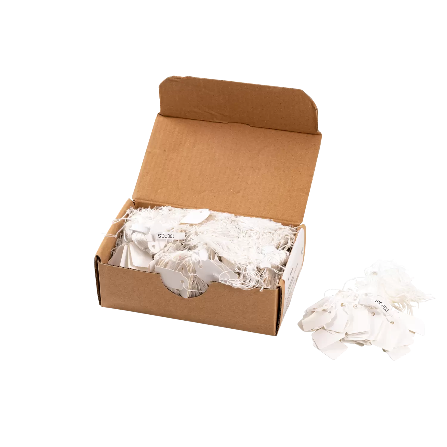 - Unbedruckt weiße Hängeetiketten mit Faden