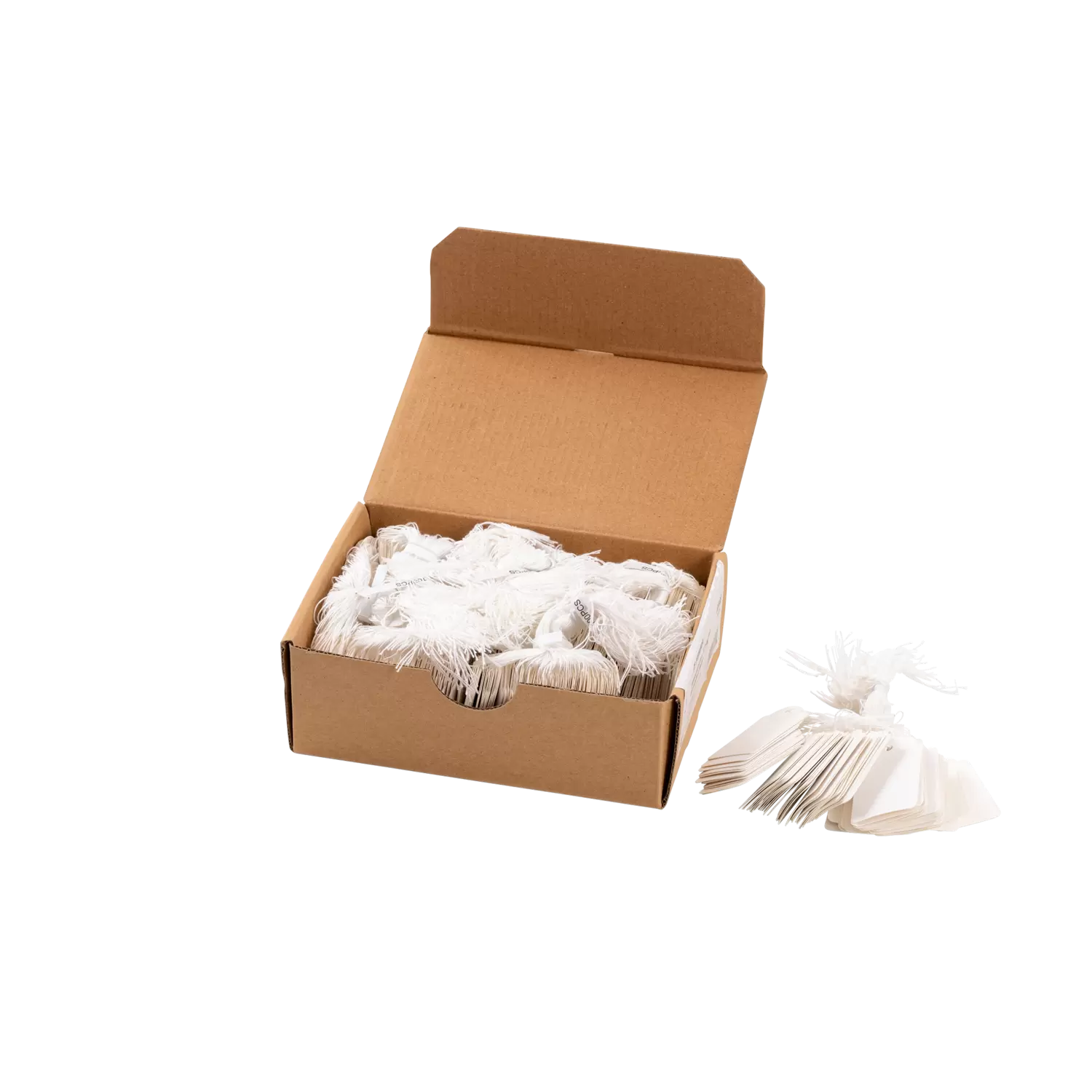 Weiße Hängeetiketten für die Preis- und Warenauszeichnung. Jeweils 1000 Etiketten pro Packung.
