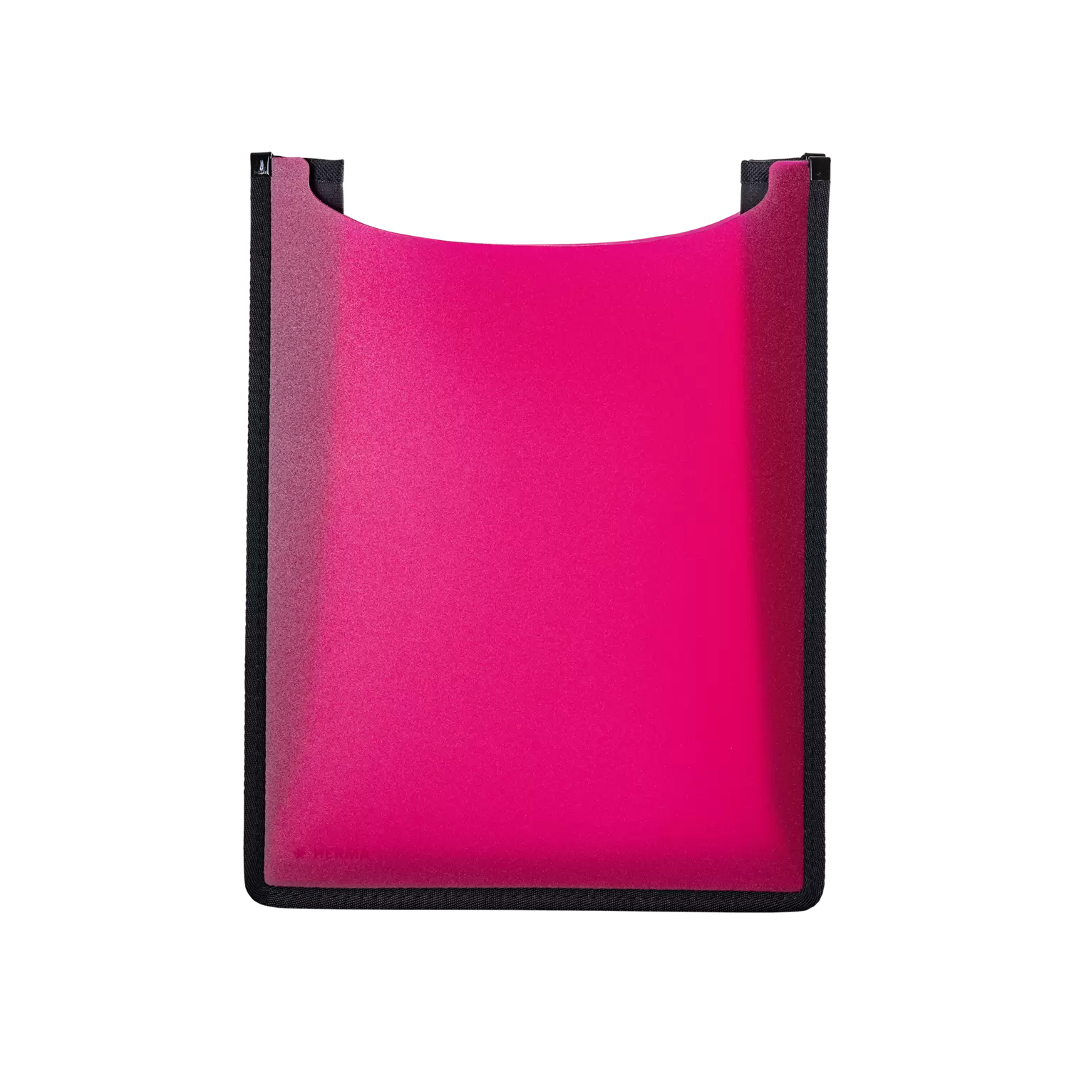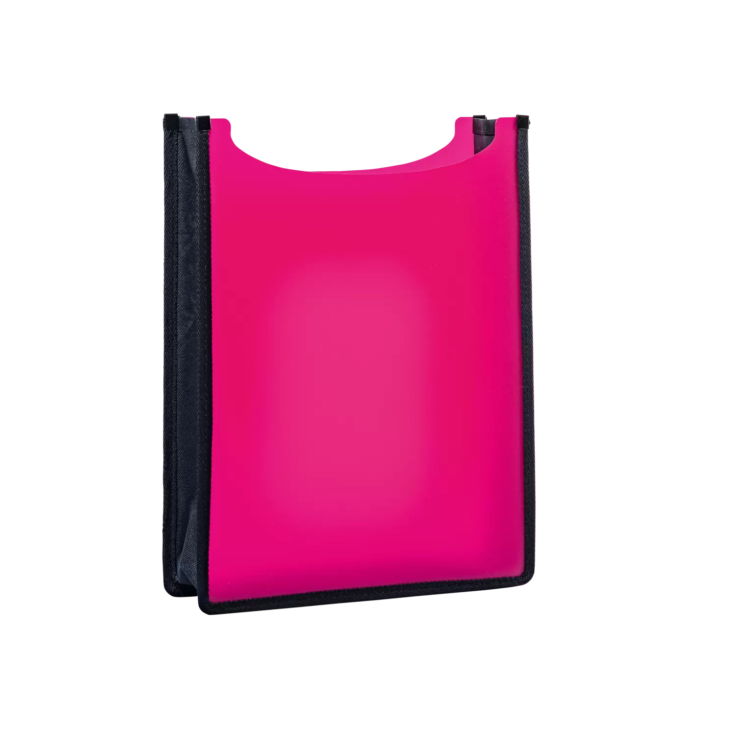Diese transluzente Heftbox in pink sorgt für Übersicht und Ordnung im Alltag. Egal, ob es um persönliche Unterlagen, geschäftliche Schriebe aus dem Büro oder Bücher aus der Schule geht, in der Box im DIN A4 Format können alle wichtigen Materialien sortiert und übersichtlich verstaut werden. Sämtliche Schnellhefter, Collegeblöcke und andere Hefte, die in der Schule oder Uni benötigt werden, finden in der praktischen Heftbox ihren Platz. Mit einer Höhe von 35cm und einer Breite von 26cm ist die offene Heftbox ideal geeignet für Unterlagen im A4 Format oder kleiner. Da sich die Heftbox flexibel an den Inhalt anpasst, wird kein unnötiger Platz verbraucht und die Box passt optimal in die Schultasche, den Rucksack oder den Schulranzen. Die durchsichtige Heftbox ist befüllbar bis zu einer maximalen Tiefe von 7cm. Das widerstandsfähige Polypropylen, aus dem die Box hergestellt ist, schützt den Inhalt vor äußeren Einflüssen wie Nässe und Verschmutzung. Kommt es doch mal zu einer Verunreinigung, kann sie ganz einfach abgewischt werden. Zusätzlich sorgt der Kunststoff für Stabilität, damit der Inhalt nicht knickt oder beschädigt wird. Die transparente Heftbox nimmt nicht viel Platz ein und ist dadurch eine optimale Unterstützung, um Übersicht und Ordnung in Aufschriebe, geschäftliche Unterlagen oder Bücher zu bekommen. Nicht nur zum Sortieren und Transportieren von Arbeitsblättern und Materialien ist die Box geeignet, darüber hinaus ist sie durch die pinke Farbe auch ein optischer Hingucker.