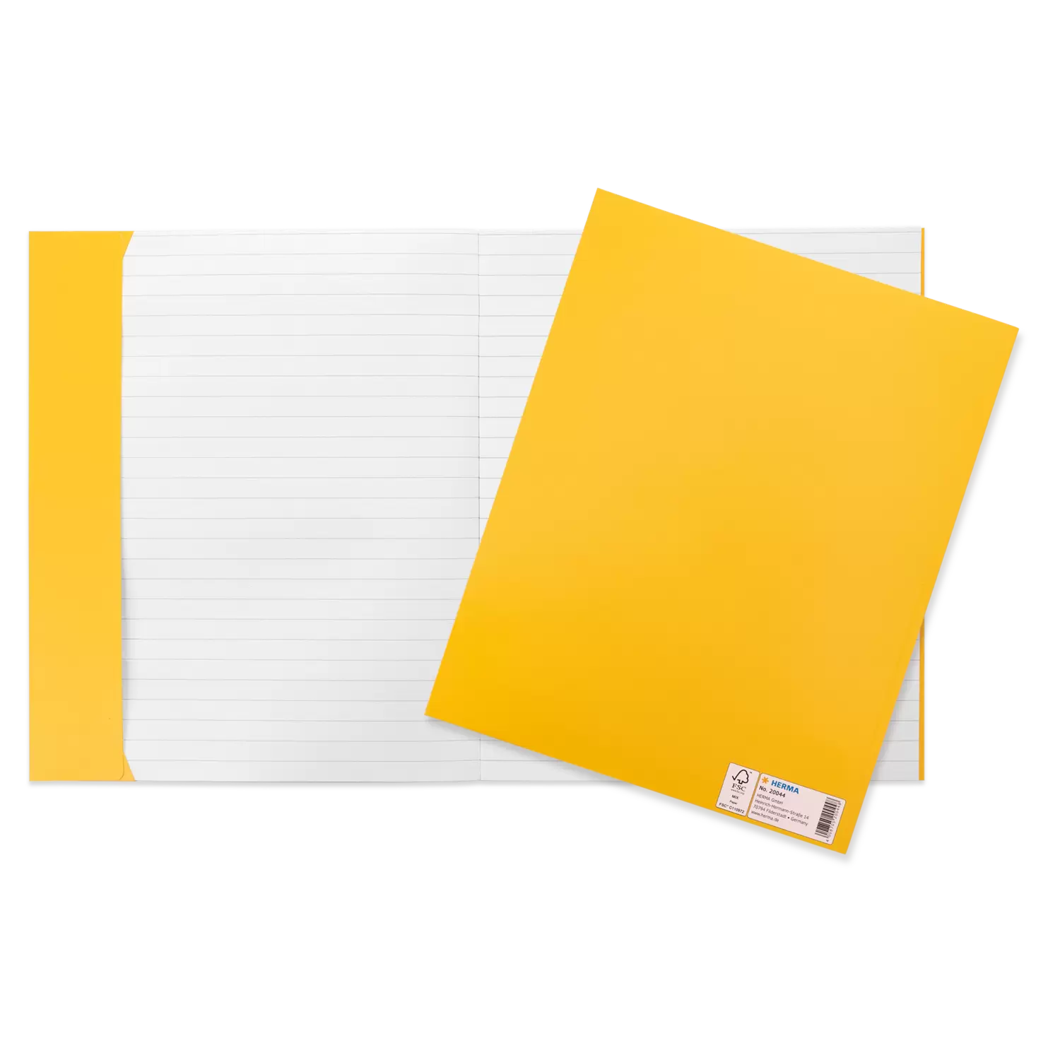 Dieser Heftschoner in gelb von HERMA eignet sich für sämtliche Quart Hefte. Der Heftumschlag bietet einen optimalen Schutz für Arbeitsunterlagen, Schulhefte oder Schreibhefte. Die Unterlagen aus Alltag, Schule, Universität oder Arbeit werden vor verschiedenen äußeren Einflüssen geschützt und es besteht nicht mehr die Gefahr, dass sie knicken. Ganz ohne Plastik und produziert aus stabilem Karton sind die Umschläge von HERMA robust und widerstandsfähig. Das kräftige Material aus extra starkem Papier ist in bewährter HERMA Qualität und umweltfreundlicher als herkömmliche Heftschoner aus Plastik. Der Umschlag für Hefte ist die optimale DIN Quart Hefthülle für alle Hefte, die nicht mehr von Schmutz und Feuchtigkeit angegriffen werden sollen, damit die enthaltenen Schriften sicher geschützt sind. Je nach dem, welche Farbe bevorzugt wird, kann zwischen verschiedenen Farben gewählt werden. Auf dem aufgedruckten Beschriftungsfeld, welches gut sichtbar auf der Vorderseite angebracht ist, können Informationen über den Besitzer, das Fach oder die Thematik des Inhalts eingetragen werden. Dadurch sind Ordnung und saubere Hefte garantiert.