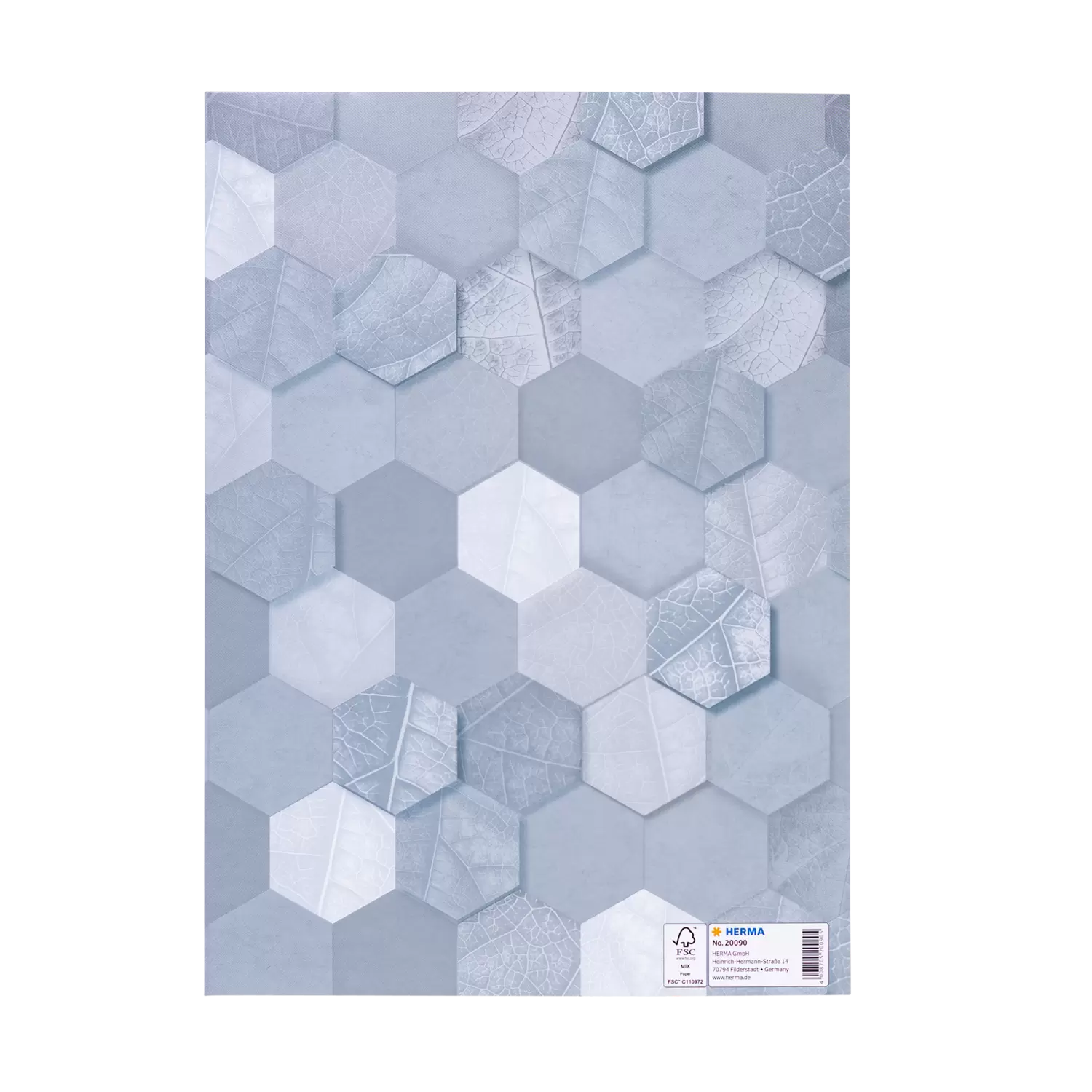 Der HERMA Heftschoner X aus robustem Karton, ist einmalig und geheimnisvoll. Steht das leuchtende, veredelte X auf der Vorderseite für die Variable in der Mathematik, als Code für ein Geheimnis, für das kreative Element oder als Unbekannte für den Inhalt des Heftes, welches geschützt wird? Der Heftschoner der Serie X ist nicht nur ein einfacher Schutzumschlag, sondern ein Tor zu einer Welt voller Abenteuer und Geheimnisse, mystisch und vielfältig. Dieser graue Heftschoner X hat das Format DIN A4 und ist mit kunstvollen Hexagonen verziert, diese sind mit feinen Blattstrukturen gefüllt, die eine faszinierende organische Struktur erzeugen. Der Blick auf das coole Design mit dem leuchtenden, veredelten X entfesselt die Kreativität und bringt spielend die Gedanken aufs Papier. Ob in der Schule, beim Lernen oder in der Freizeit – dieser Heftschoner ist der perfekte Begleiter für alle, die das Besondere suchen: Die neue Serie X.
