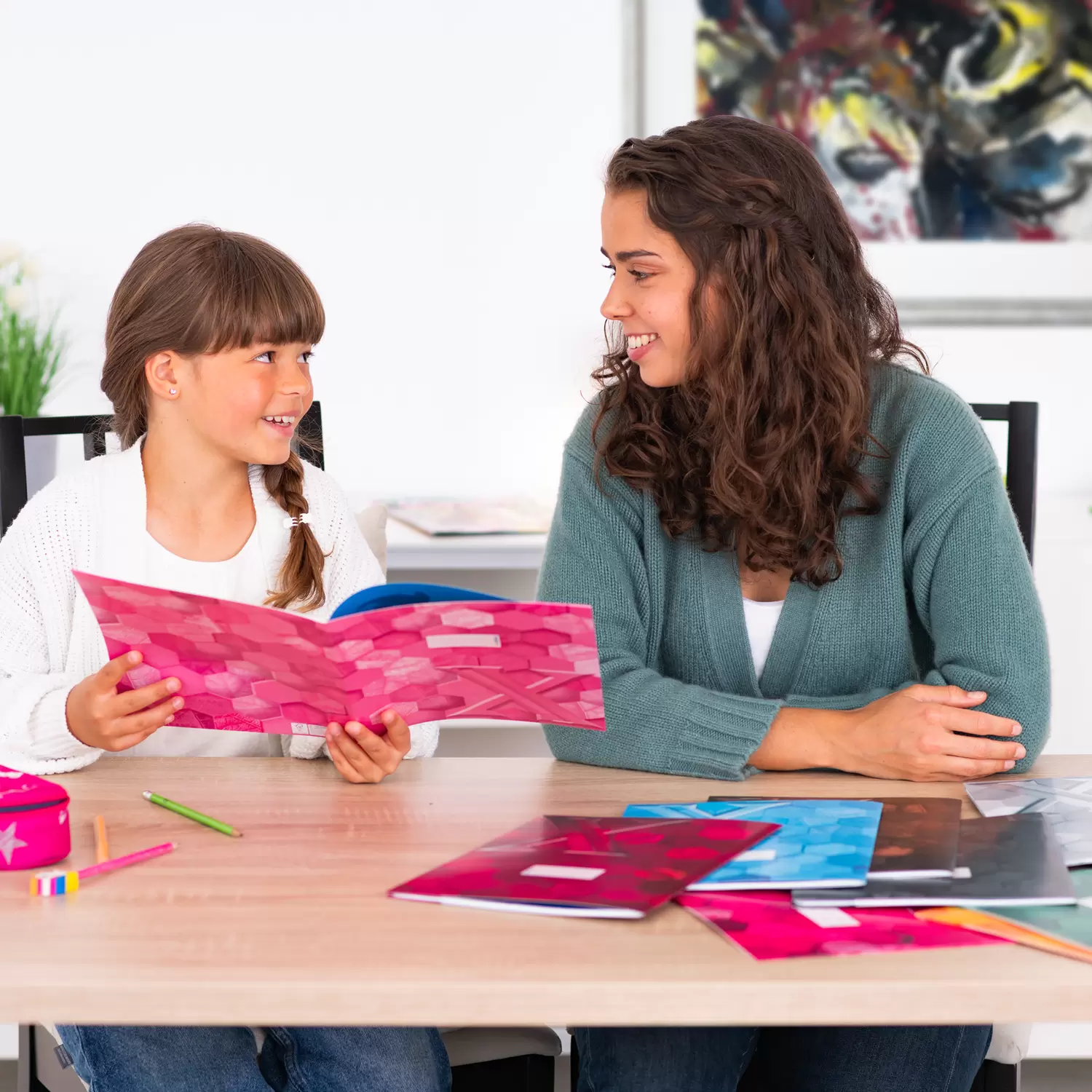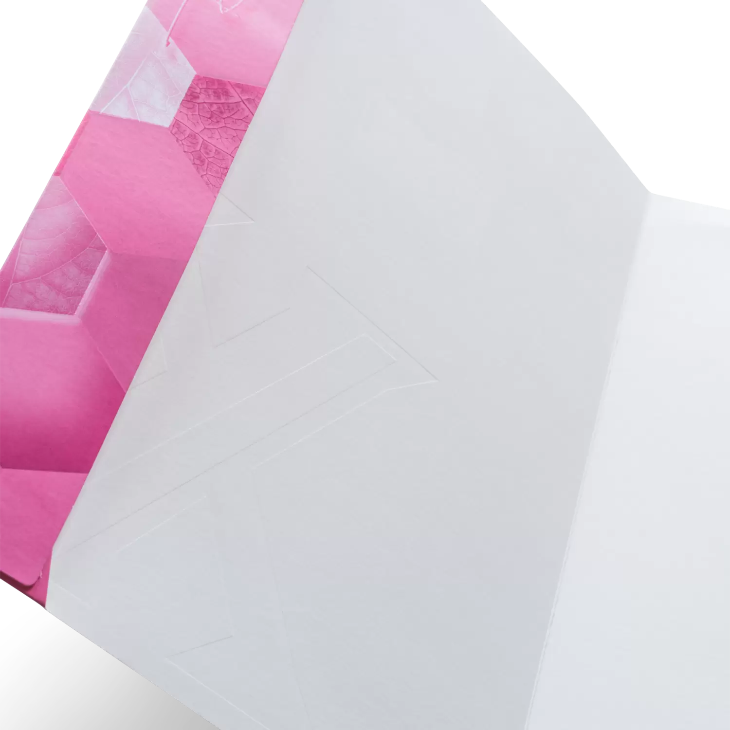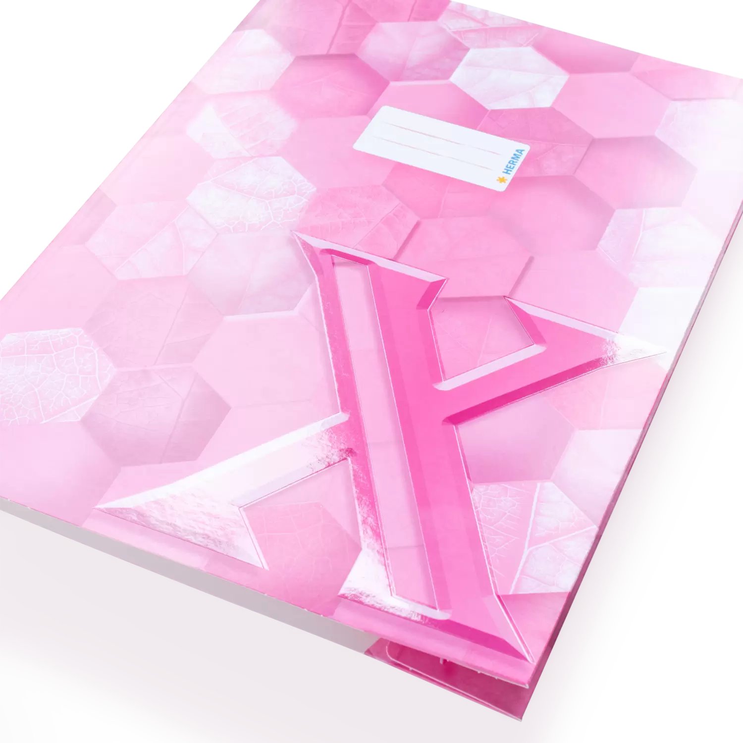 Der HERMA Heftschoner X aus robustem Karton, ist einmalig und geheimnisvoll. Steht das leuchtende, veredelte X auf der Vorderseite für die Variable in der Mathematik, als Code für ein Geheimnis, für das kreative Element oder als Unbekannte für den Inhalt des Heftes, welches geschützt wird? Der Heftschoner der Serie X ist nicht nur ein einfacher Schutzumschlag, sondern ein Tor zu einer Welt voller Abenteuer und Geheimnisse, mystisch und vielfältig. Dieser rosafarbene Heftschoner X hat das Format DIN A4 und ist mit kunstvollen Hexagonen verziert, diese sind mit feinen Blattstrukturen gefüllt, die eine faszinierende organische Struktur erzeugen. Der Blick auf das coole Design mit dem leuchtenden, veredelten X entfesselt die Kreativität und bringt spielend die Gedanken aufs Papier. Ob in der Schule, beim Lernen oder in der Freizeit – dieser Heftschoner ist der perfekte Begleiter für alle, die das Besondere suchen: Die neue Serie X.