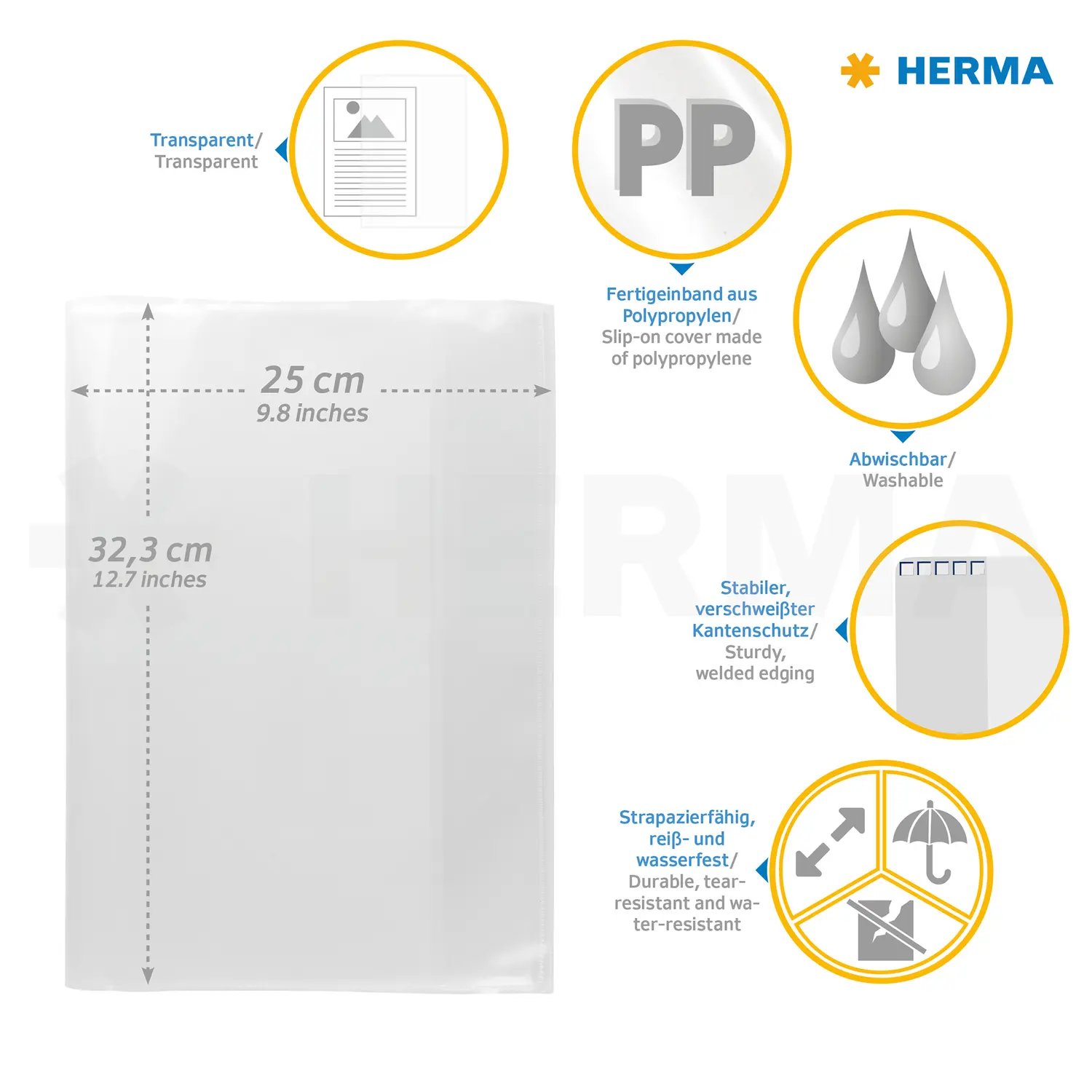 - Heftschoner aus strapazierfähiger Polypropylenfolie, transparent und farblos