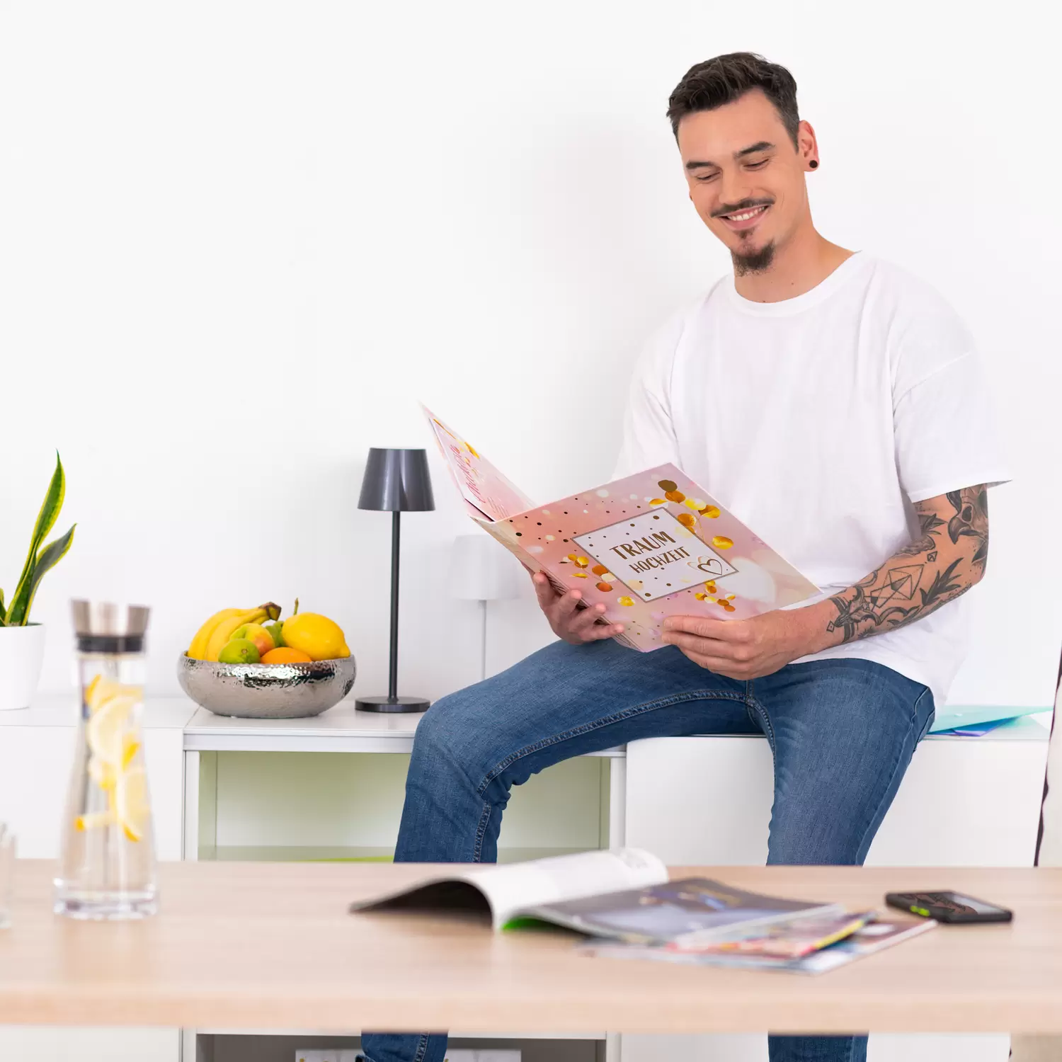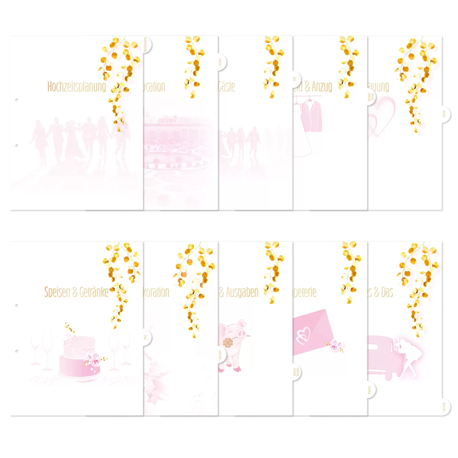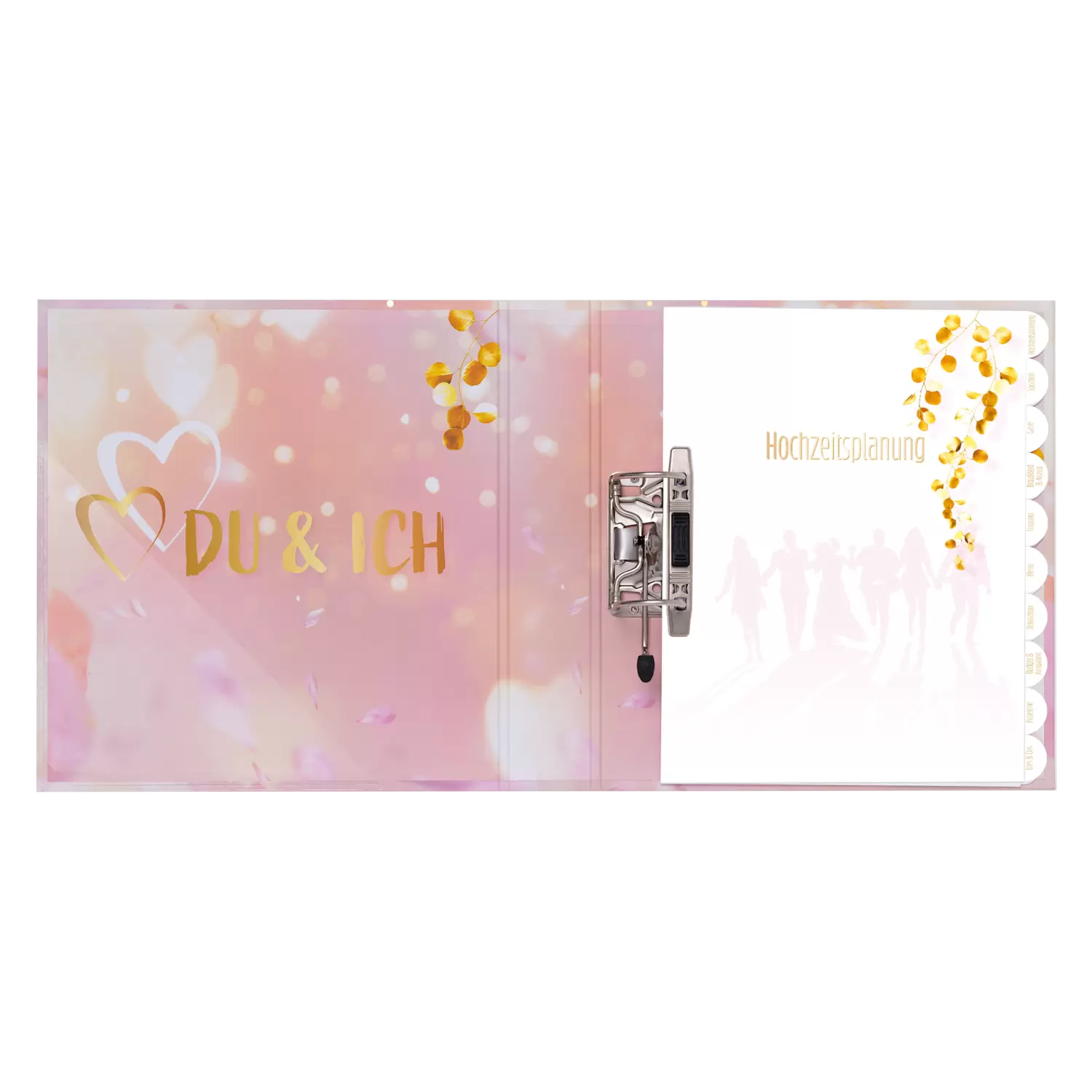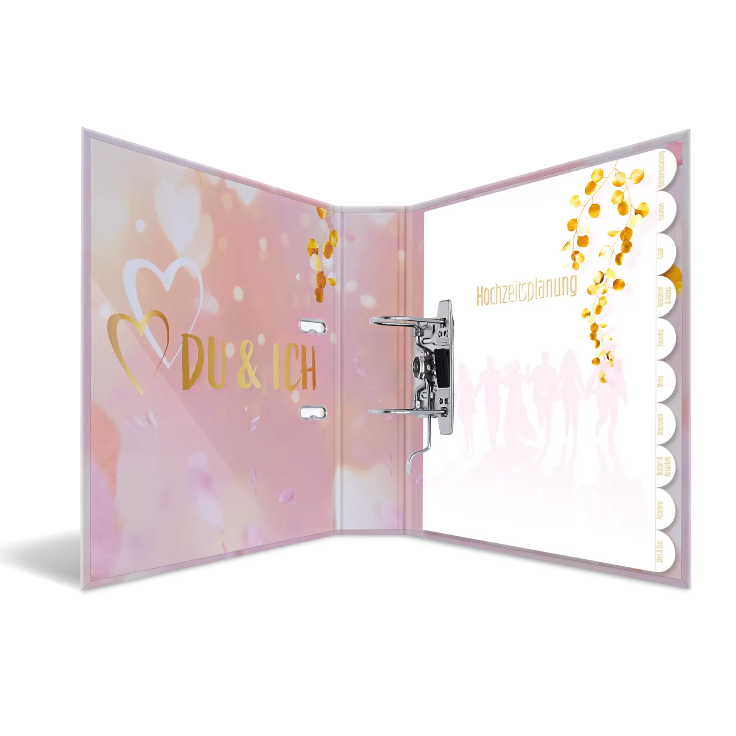 • Hochwertiger folienveredelter Hochzeitsordner mit modernem roséfarbenem Design, detailverliebt und durchdacht