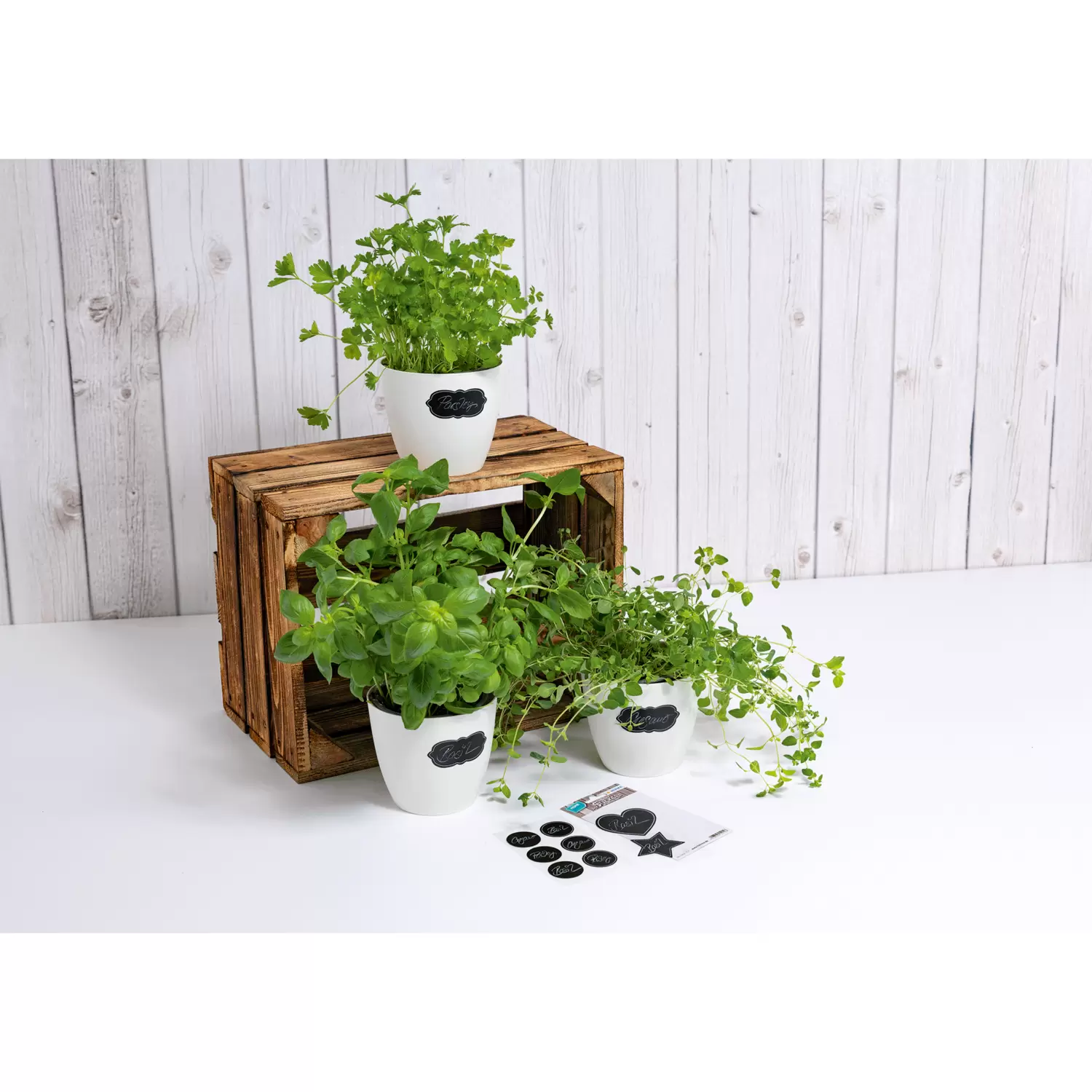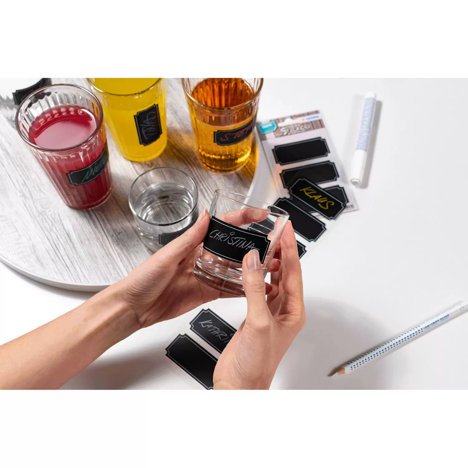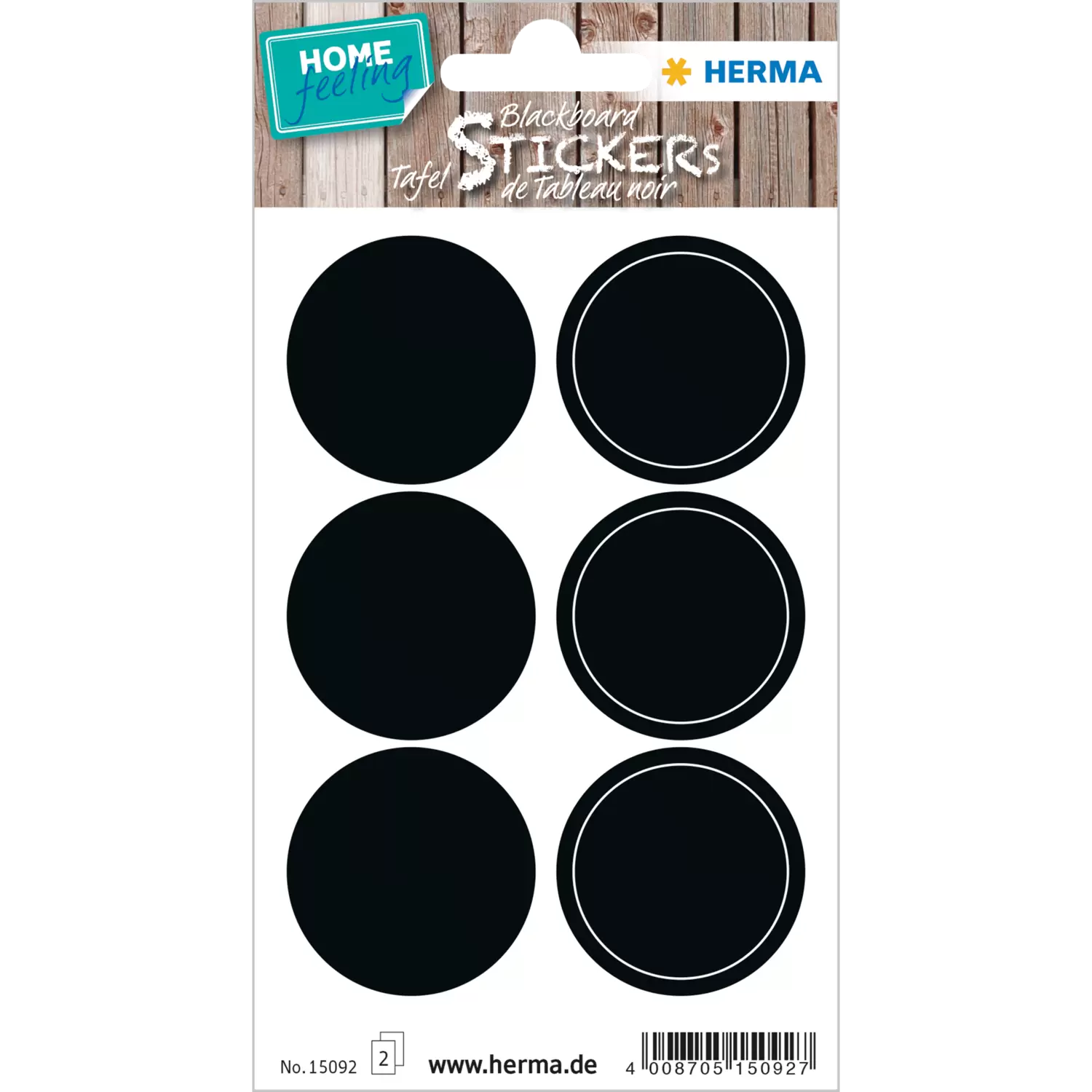 Diese runden Tafeletiketten von HERMA sind perfekt zum Dekorieren oder Verschenken. Einfach mit Kreide oder einem Kreidestift beschriften, aufkleben und fertig. Mit den schwarzen, stylischen Tafeletiketten lassen sich persönliche Botschaften auf eine ganz besondere Weise vermitteln. Sie verleihen Geschenken eine ganz individuelle Note und sind selbstverständlich nicht nur bei Geschenken eine gute Idee. Auch zu Hause sind sie ein praktischer und besonders angesagter Helfer und können beispielsweise für die Beschriftung von Flaschen oder Vorratsdosen verwendet werden. Alles, was zur Beschriftung der Tafelfolie gebraucht wird, ist herkömmliche Tafelkreide oder ein Kreidestift. Die selbstklebende Tafelfolie kann bei Bedarf einfach feucht abgewischt und neu beschrieben werden. Die Aufkleber haften permanent auf allen glatten Oberflächen wie Glas, Keramik, Kunststoff und Metall In einer Packung sind zwei Bögen à 6 runde Tafeletiketten enthalten.