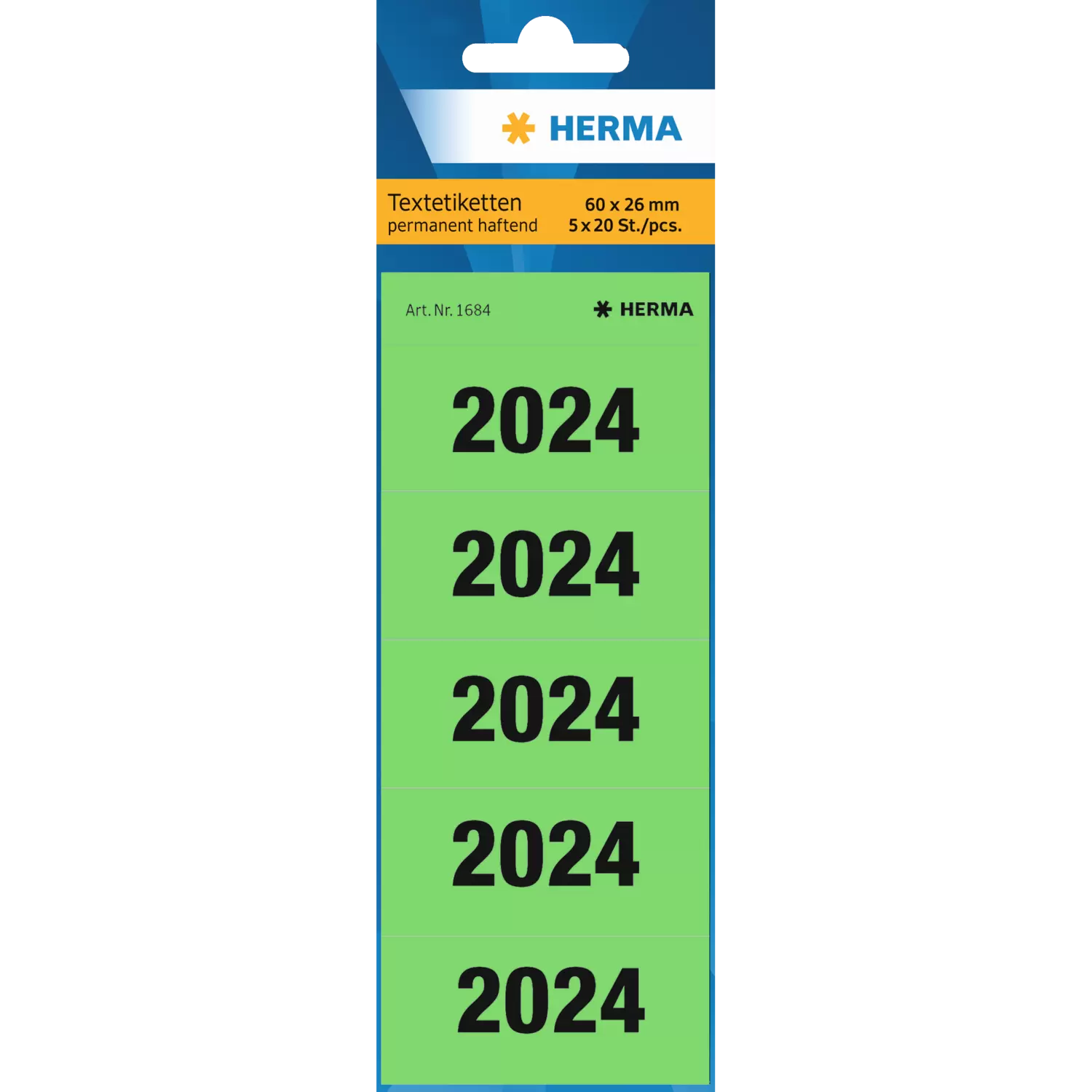 Jahreszahlen 2024 für Ordner, 60 x 26 mm, grün, permanent haftend