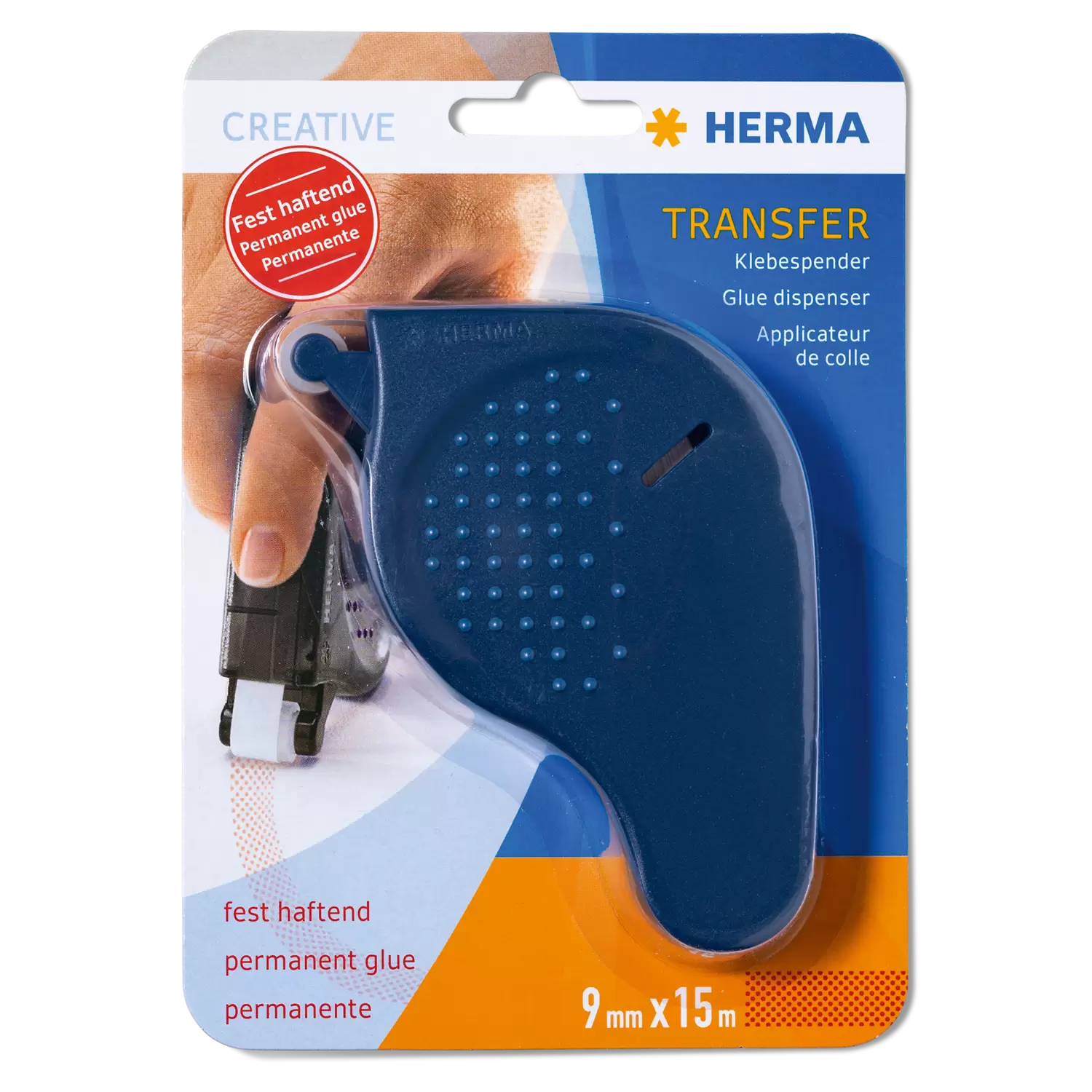 Die HERMA Klebespender Transfer, fest haftend sind die schnelle und einfache Klebelösung für alle (K)Lebenslagen. Sie garantieren schnelles, sauberes und präzises Kleben auf Papier, Pappe und vielen weiteren Materialien und sind damit bestens für das Büro, die Schule, zum Basteln, zum Einkleben von Fotos oder zum kreativen Arbeiten mit Holz, Kork, Folie und anderen Materialien geeignet. Die Ergonomisch geformten Klebespender lassen sich mit einer Hand bedienen und dank der praktischen Nachfüllrolle sind sie stets einsatzbereit. Die Griffflächen an den Seiten sorgen für optimalen Grip, so liegen sie gut in der Hand und sind kinderleicht zu benutzen – auch für Linkshänder. Der transparente 9 mm breite Klebestreifen ist lösemittel- und säurefrei, dabei fotoverträglich und archivierungsbeständig. Durch das Abrollen werden kleine Klebepunkte aufgetragen, somit ist sicherer Halt garantiert.