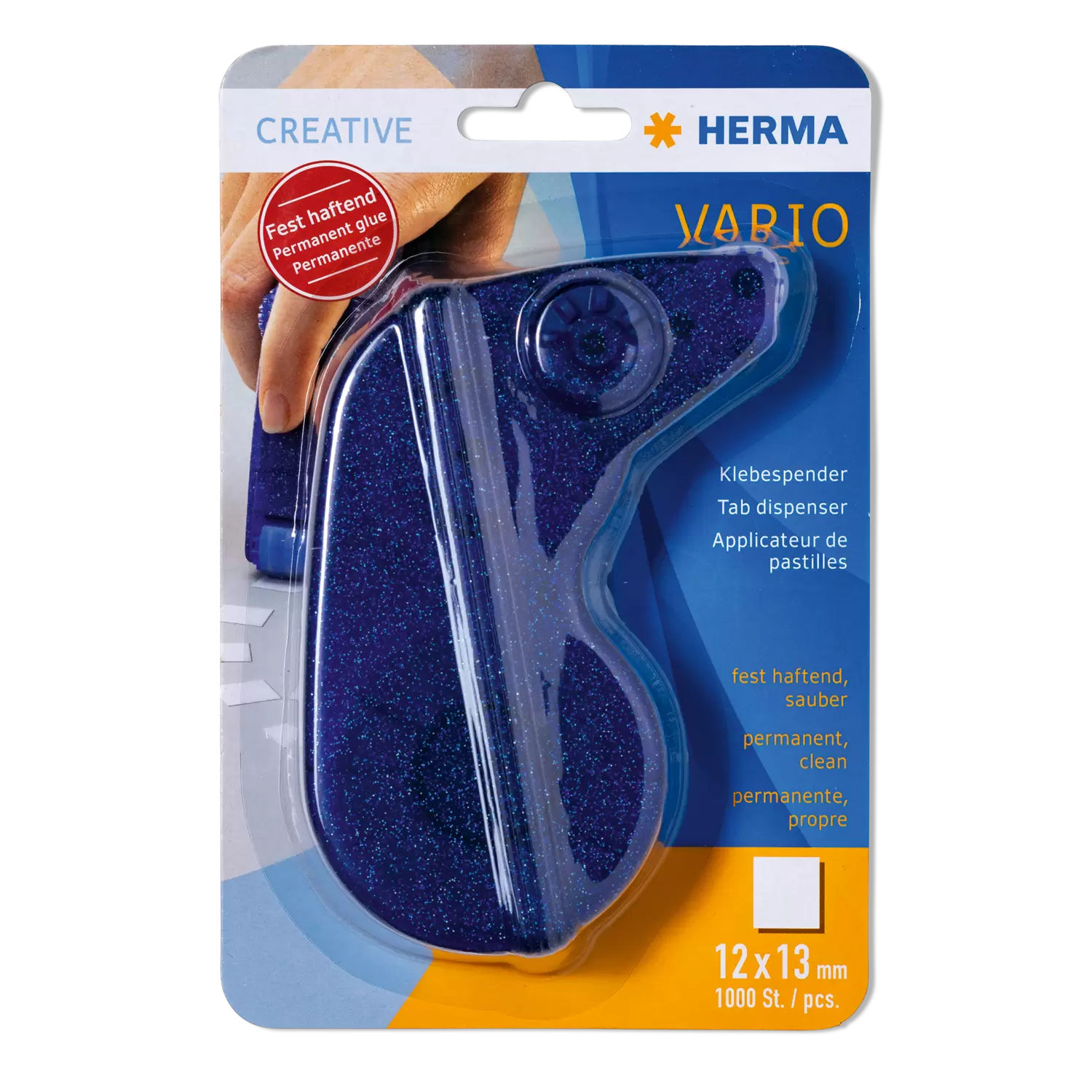 Die HERMA Klebespender Vario, fest haftend sind die schnelle und einfache Klebelösung für alle (K)Lebenslagen. 1.000 Klebestücke im Format 12 x 13 mm garantieren schnelles, sauberes und präzises Kleben auf Papier, Pappe und vielen weiteren Materialien und sind damit bestens für das Büro, die Schule, zum Basteln, zum Einkleben von Fotos oder zum kreativen Arbeiten mit Holz, Kork, Folie und anderen Materialien geeignet. Die Ergonomisch geformten Klebespender lassen sich mit einer Hand bedienen und sind dank der praktischen Nachfüllrolle stets einsatzbereit. Die Klebestücke sind lösemittel- und säurefrei, dabei fotoverträglich und archivierungsbeständig. Sie lassen sich einzeln oder in Serie Abrollen, somit ist sicherer Halt garantiert.