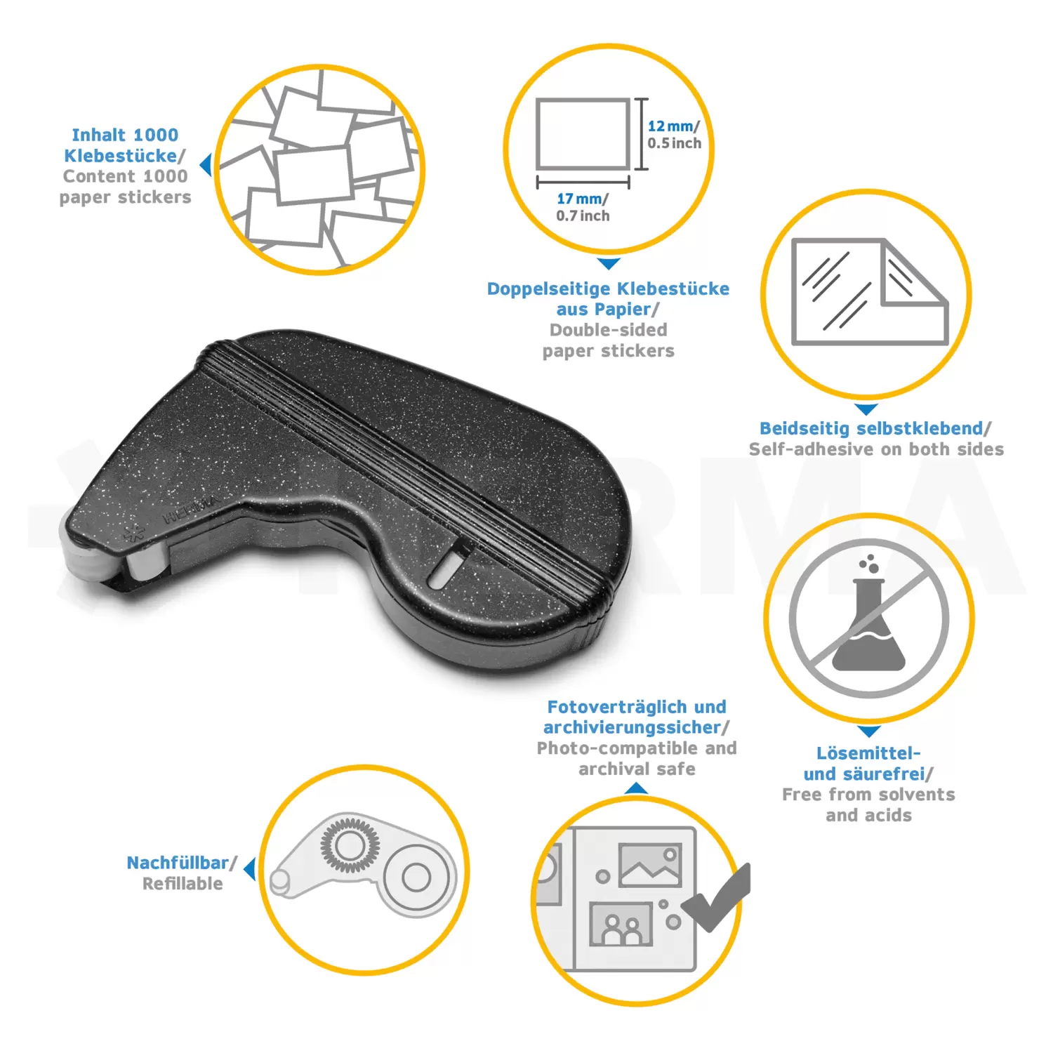 • Inklusive 1.000 Klebestücken im Format 12 x 13 mm