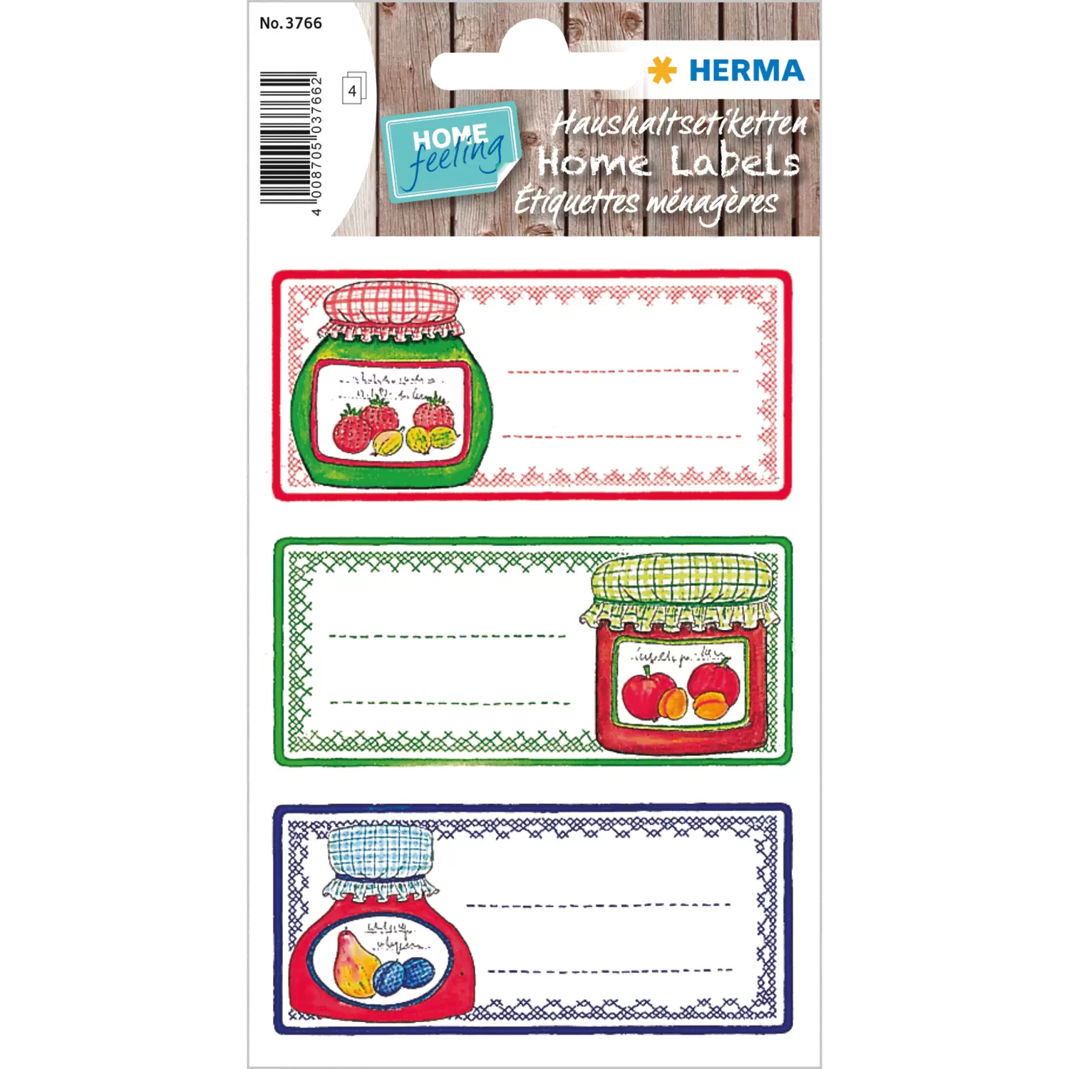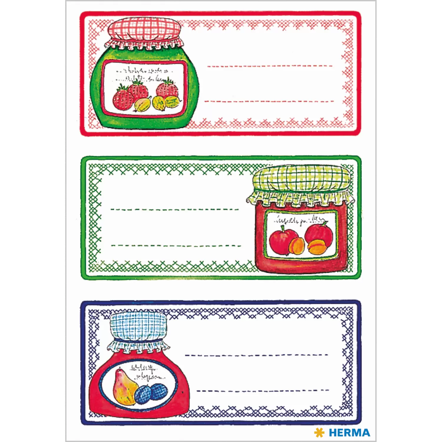 Die Küchenetiketten mit "Einmachgläser”-Motiven von HERMA eignen sich ideal zum Kennzeichnen von Vorräten und als Einmachetiketten. Mit diesen liebevoll gestalteten Etiketten kommen selbstgemachte Lebensmittel ganz groß raus. Egal ob zum Beschriften von Speisen und Getränken oder zur Kennzeichnung von Gewürzdosen: Die selbstklebenden, bunt bedruckten Küchenetiketten aus Papier sind ein vielseitig einsetzbarer Helfer im Alltag. Sie verleihen selbstgemachten Marmeladen, Chutneys oder eingelegten Früchten garantiert den letzten Schliff. Neben dem wunderschönen Design überzeugen die Einmachgläser-Etiketten auch mit der gewohnten HERMA-Qualität. Die selbstklebenden Küchenetiketten haften permanent und zuverlässig auf vielen verschiedenen glatten Oberflächen wie Glas, Plastik, Metall. In einer Packung sind insgesamt 12 farbenfrohe Küchenetiketten enthalten.