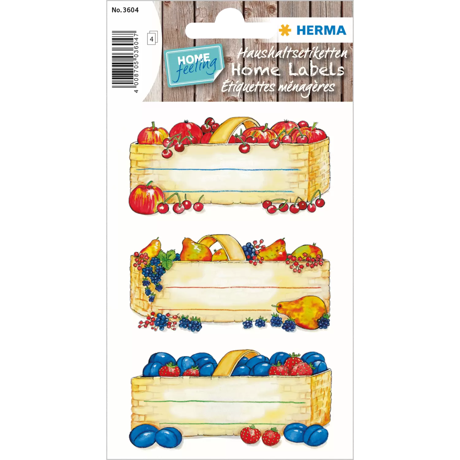 Hier macht das Design richtig Lust auf selbstgemachte Geschenke aus der Küche! Die klassisch gestalteten Küchenetiketten "Obstkörbe" von HERMA sind ideal geeignet, um die selbst hergestellten Leckereien zu verschönern oder aber schlichte Dosen und Gläser zu Verzieren und aufzuwerten. Beschriftet werden können die selbstklebenden Etiketten ganz einfach von Hand mit jedem Stift oder Marker. So entstehen garantiert persönliche und besondere Kennzeichnungen, die auch für mehr Ordnung und Überblick im Küchenschrank sorgen. Neben der optischen Qualität überzeugen die Küchenetiketten natürlich auch durch die hohe Materialqualität von HERMA. Die Etiketten sind permanent haftend und halten zuverlässig auf glatten Oberflächen wie Glas, Kunststoff oder Metall. In jeder Packung befinden sich auf 4 Bögen insgesamt 12 Etiketten in 3 unterschiedlichen Designs.