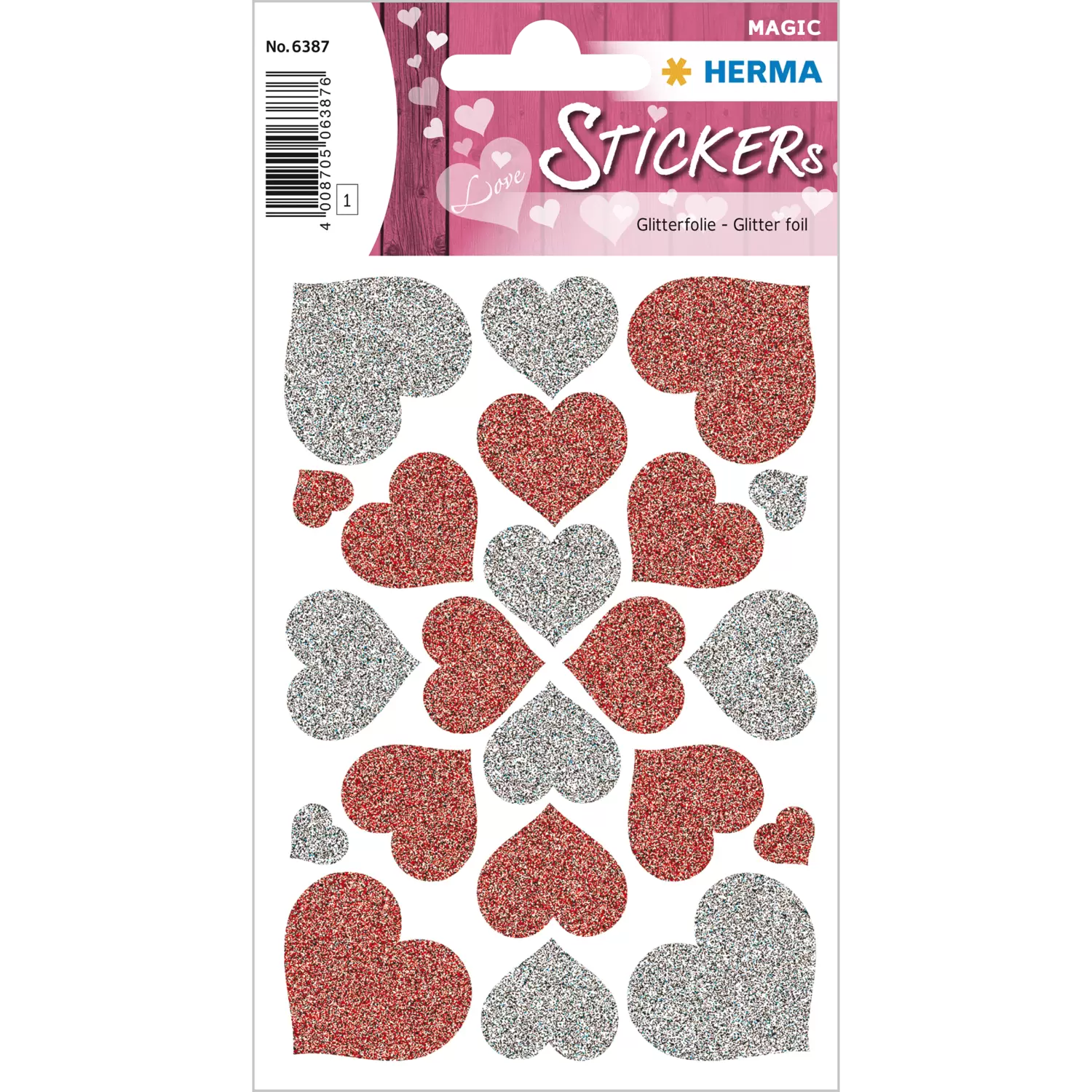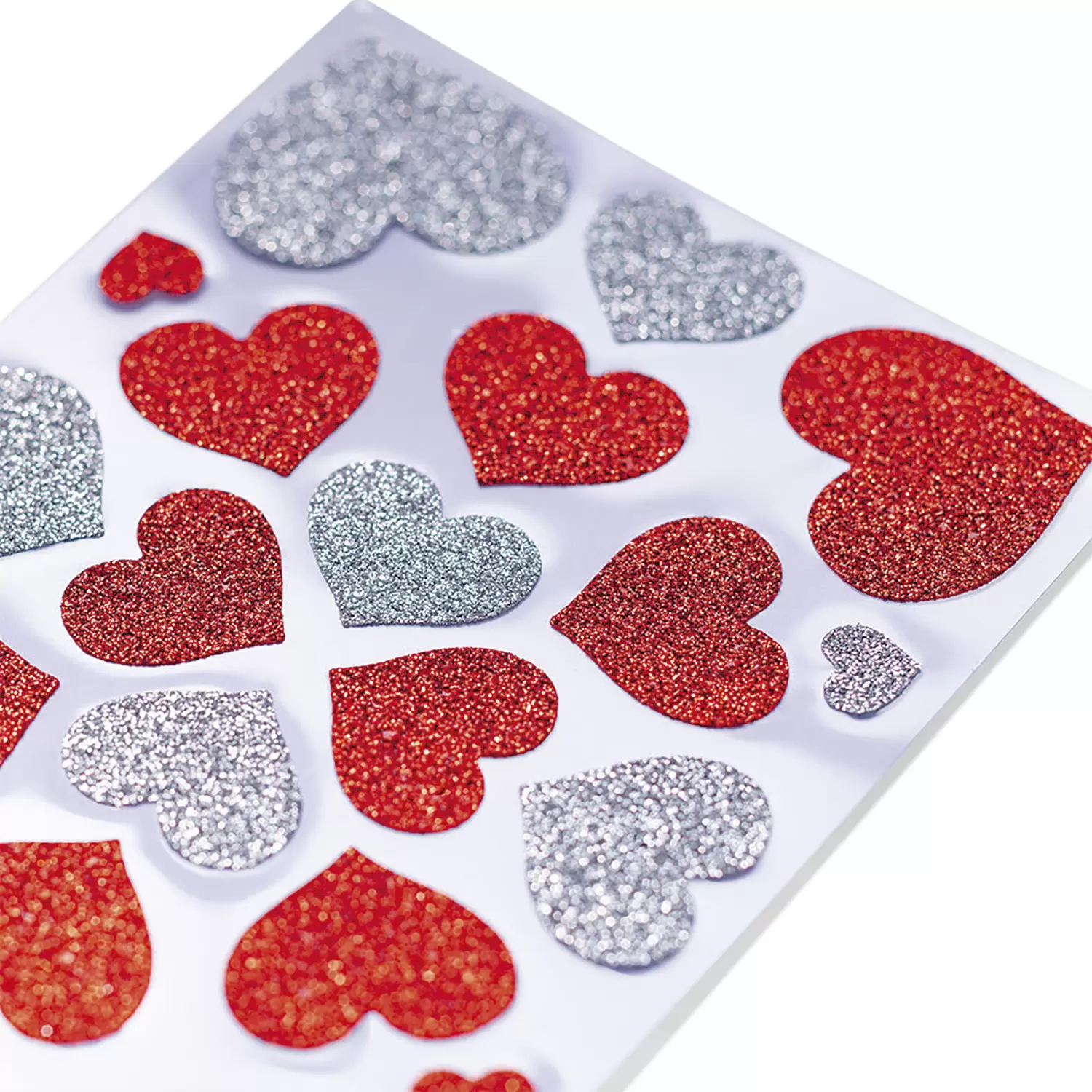 Selbstklebende Schmucketiketten aus speziellen Materialien, mit Herzmotive. Zum Sammeln oder zur Gestaltung und Verzierung von Geschenken, Briefen oder anderen beliebigen Gegenständen.