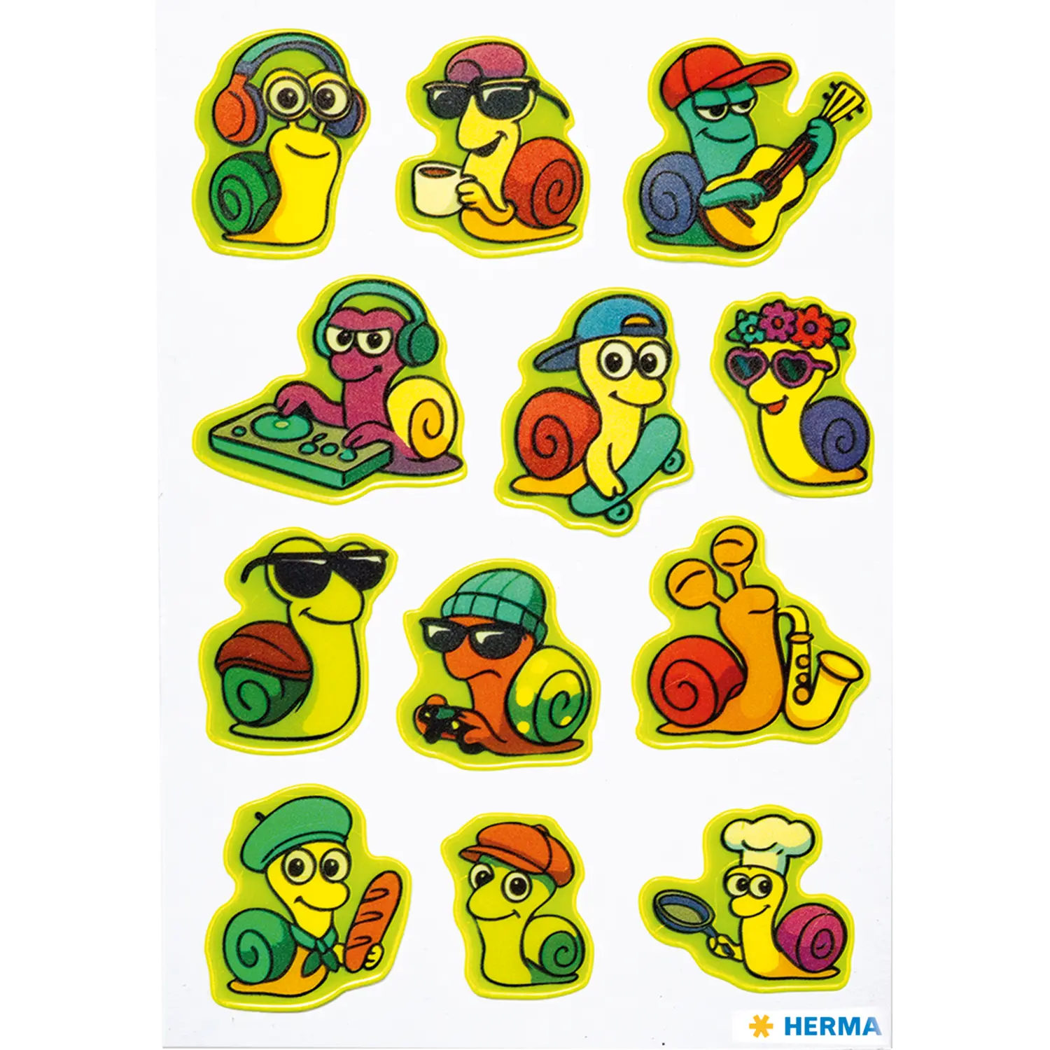 Die Schnecken Sticker setzen auf eine völlig neue Kombination aus Witz, Kreativität und auffälligem Design. Jede Figur überrascht mit einer besonderen Persönlichkeit ob als coole Skater Schnecke, musikalischer DJ oder talentierter Koch. Mit ihren witzigen Details und charmanten Ideen bringen die Motive Abwechslung in jede Sammlung. Hergestellt aus lichtreflektierendem Neon Material in leuchtendem Gelb ziehen die Sticker sofort alle Blicke auf sich. Das außergewöhnliche Finish verleiht ihnen nicht nur Strahlkraft, sondern auch einen modernen, trendigen Look, der sie von klassischen Stickern deutlich abhebt. Ob beim Dekorieren von Heften, beim Sammeln und Tauschen oder als kleines Geschenk die Schnecken sorgen überall für ein Highlight. Ein kreatives Set, das Humor, Originalität und knallige Farbe perfekt vereint und so garantiert gute Laune verbreitet.