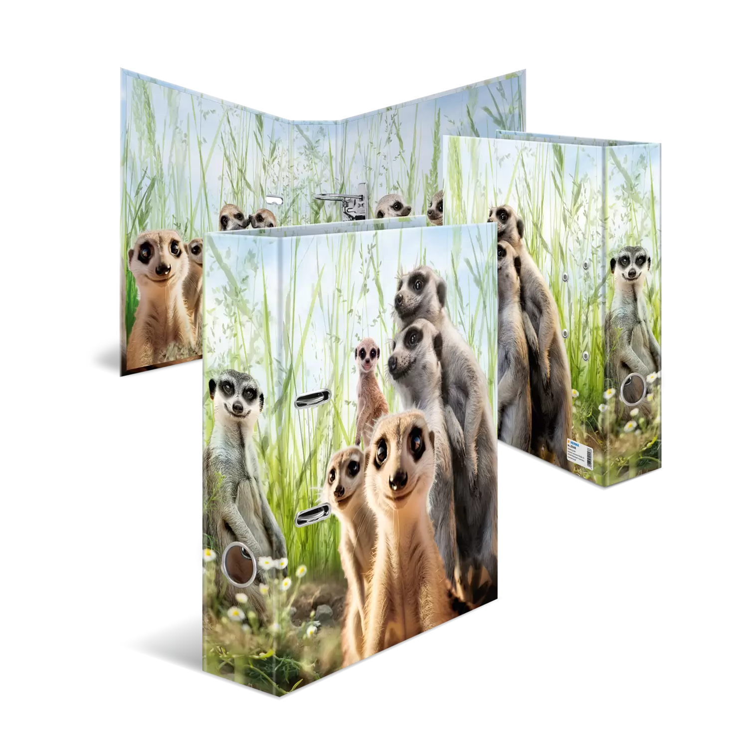 Dieser Tiermotiv-Ordner mit farbigem Innendruck ist bestens geeignet für alle Tierliebhaber, die Ordnung und Optik miteinander verbinden möchten. Der lustige HERMA Ordner für DIN A4 Format verfügt über einen schlichten Hintergrund mit Fellzeichnung. Aufmerksam schauen sie einen an, die Erdmännchenbande, die Teamworker mit perfekter Arbeitsteilung. Mit einer Rückenbreite von 70mm bietet der breite Ordner mit Innendruck jede Menge Platz für wichtige Dokumente und gelochte Unterlagen aus dem Alltag, der Schule, Uni oder dem Büro. Egal in welchem Bereich Ordnung geschaffen werden soll, dieser Ordner ist defintiv eine gute Wahl. Mit der stabilen Hebelmechanik und dem praktischen Niederhalter können alle Zettel einfach ein-, aus- und umgeheftet sowie eng beieinander gehalten werden, um den Platz möglichst effizient zu nutzen. Das Griffloch auf der Rückseite sorgt dafür, dass der Ordner mit nur einem Handgriff kinderleicht aus dem Regal herausgezogen werden kann. Der stabile Karton, aus dem der Motivordner angefertigt wurde, ist umweltfreundlich und ein optimal geeignetes Material, um Ihre wichtigsten Unterlagen konsequent zu verstauen. Ist erstmal eine geeignete Ordnerstruktur geschaffen, werden in Zukunft wie von selbst die Dokumente richtig eingeheftet und binnen Sekunden bei Bedarf wiedergefunden. So kann kost bare Zeit und Geduld gespart werden - Sie werden staunen, wieviel Zeit Sie sparen.