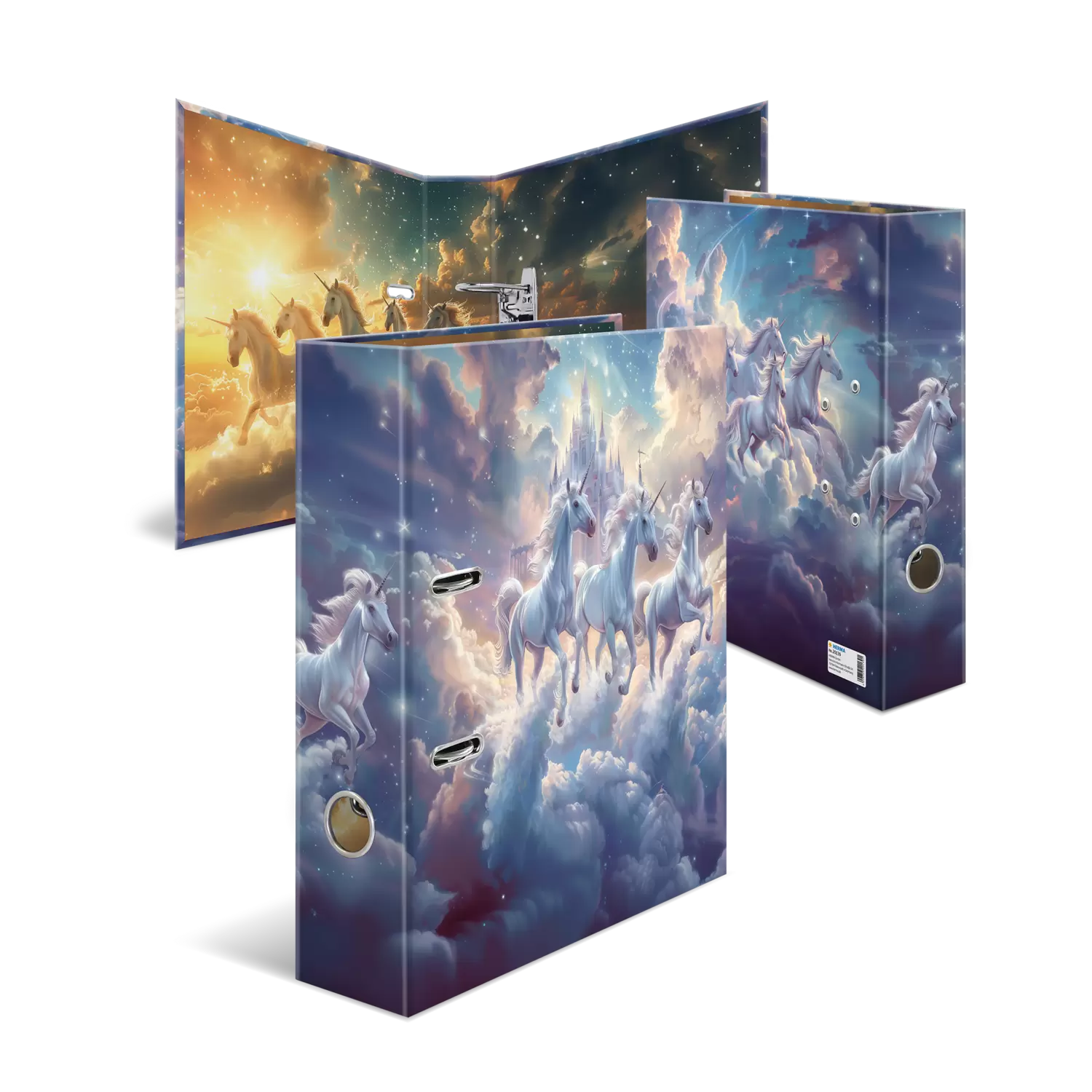 - Wunderschöner Motiv-Ordner im Design Fantasy Unicorns, außen und innen vollfächig bedruckt