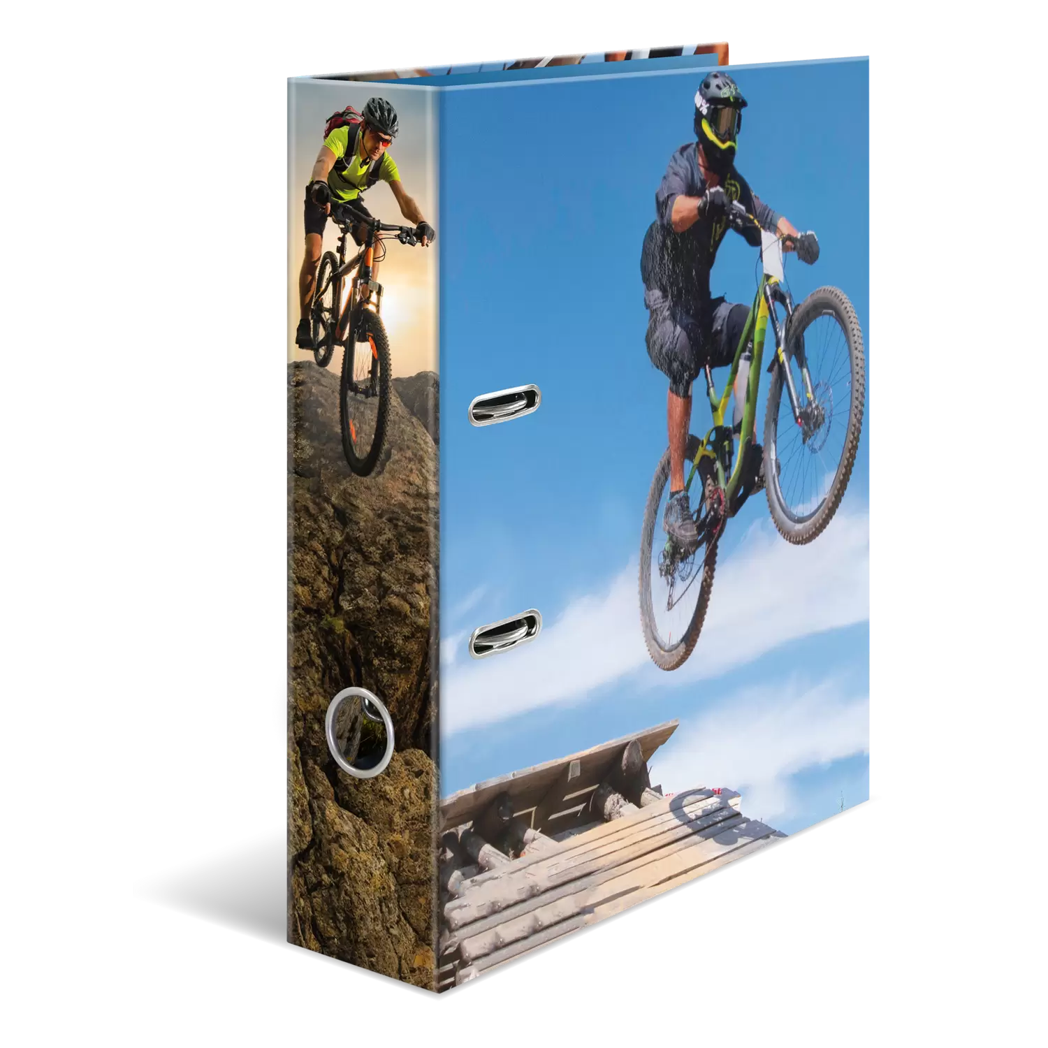 - Dynamischer Motiv-Ordner mit Sportmotiv "Mountain Bike", mit hochwertiger Veredelung, außen und innen vollfächig bedruckt