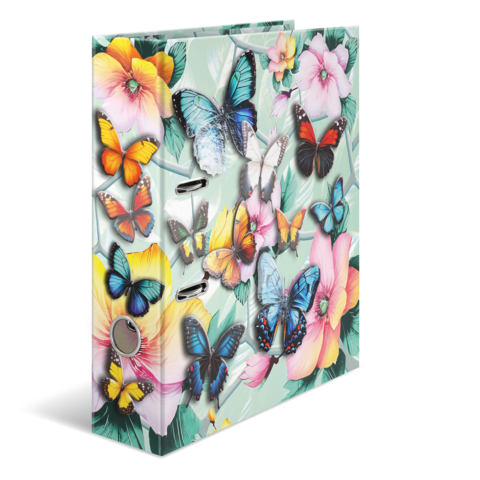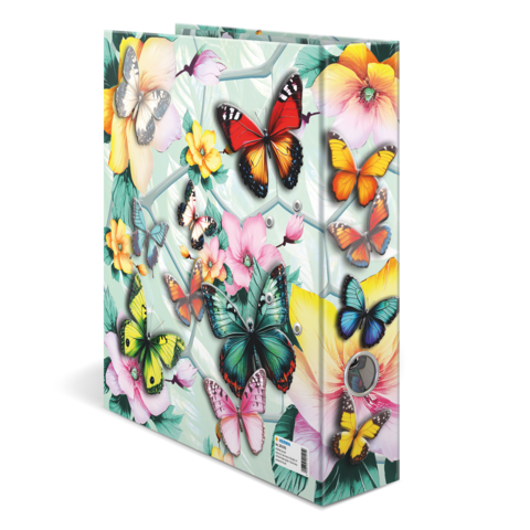 Willkommen im Traumgarten: Zarte Blüten kombiniert mit eleganten Schmetterlingen in wunderschönen Pastellfarben. Dieser Motiv-Ordner ist mit viel Liebe und Feingefühl für's Detail ein absoluter Hingucker. Die filigranen Schmetterlinge auf der Außenseite des Ordners erwachen dank der leuchtenden Farben und der glänzenden Folienveredelung beinahe zum Leben. Von leuchtendem Blau über sonniges Gelb bis hin zu zartem Rosa. hier schlägt das Herz jedes Naturliebhabers höher. Der Ordner aus stabilem Karton ist hochwertig verarbeitet, mit Innendruck und stabiler Hebelmechanik. Er garantiert eine optimale Aufbewahrung von Dokumenten und Klarsichtfolien für optimale Ordnung zu Hause, in der Schule, Uni oder im Büro. Ein echter Hingucker im Regal und auf dem Schreibtisch.