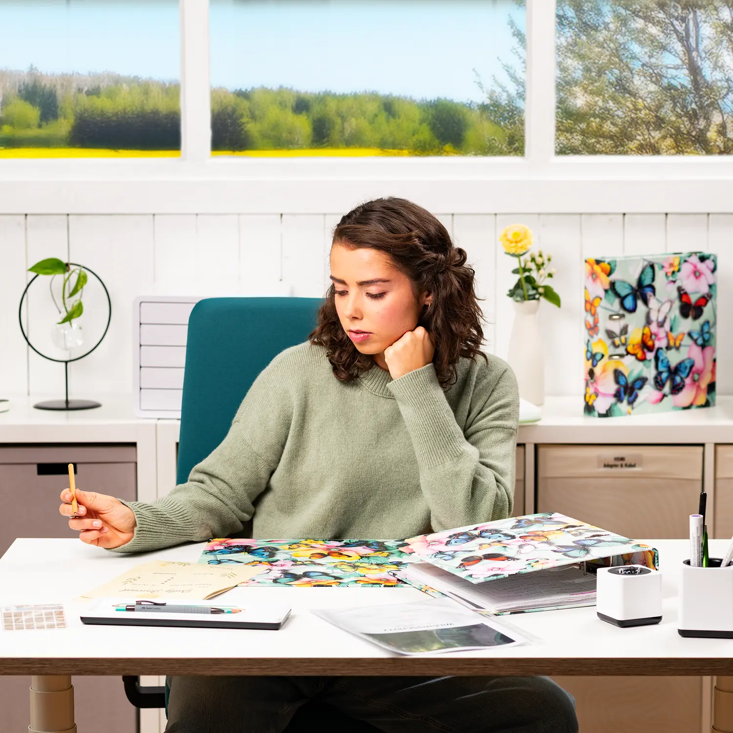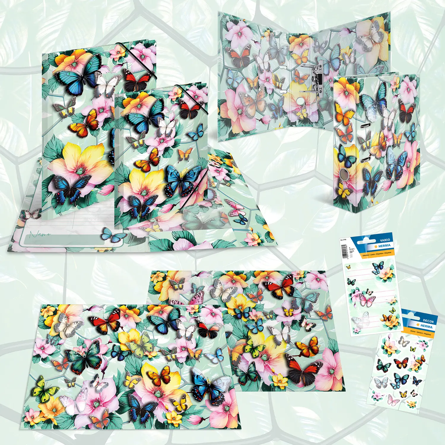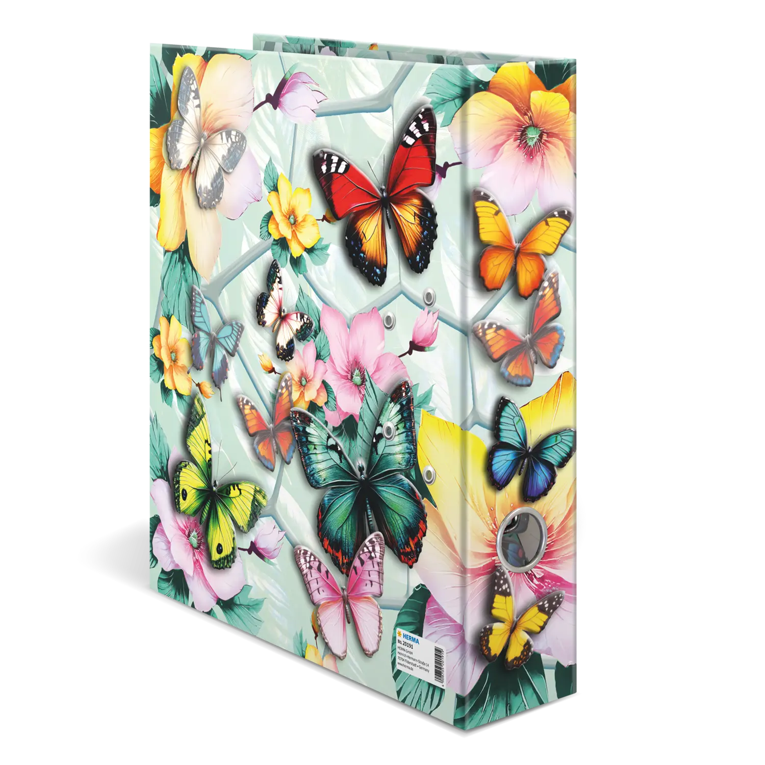 Willkommen im Traumgarten: Zarte Blüten kombiniert mit eleganten Schmetterlingen in wunderschönen Pastellfarben. Dieser Motiv-Ordner ist mit viel Liebe und Feingefühl für's Detail ein absoluter Hingucker. Die filigranen Schmetterlinge auf der Außenseite des Ordners erwachen dank der leuchtenden Farben und der glänzenden Folienveredelung beinahe zum Leben. Von leuchtendem Blau über sonniges Gelb bis hin zu zartem Rosa. hier schlägt das Herz jedes Naturliebhabers höher. Der Ordner aus stabilem Karton ist hochwertig verarbeitet, mit Innendruck und stabiler Hebelmechanik. Er garantiert eine optimale Aufbewahrung von Dokumenten und Klarsichtfolien für optimale Ordnung zu Hause, in der Schule, Uni oder im Büro. Ein echter Hingucker im Regal und auf dem Schreibtisch.