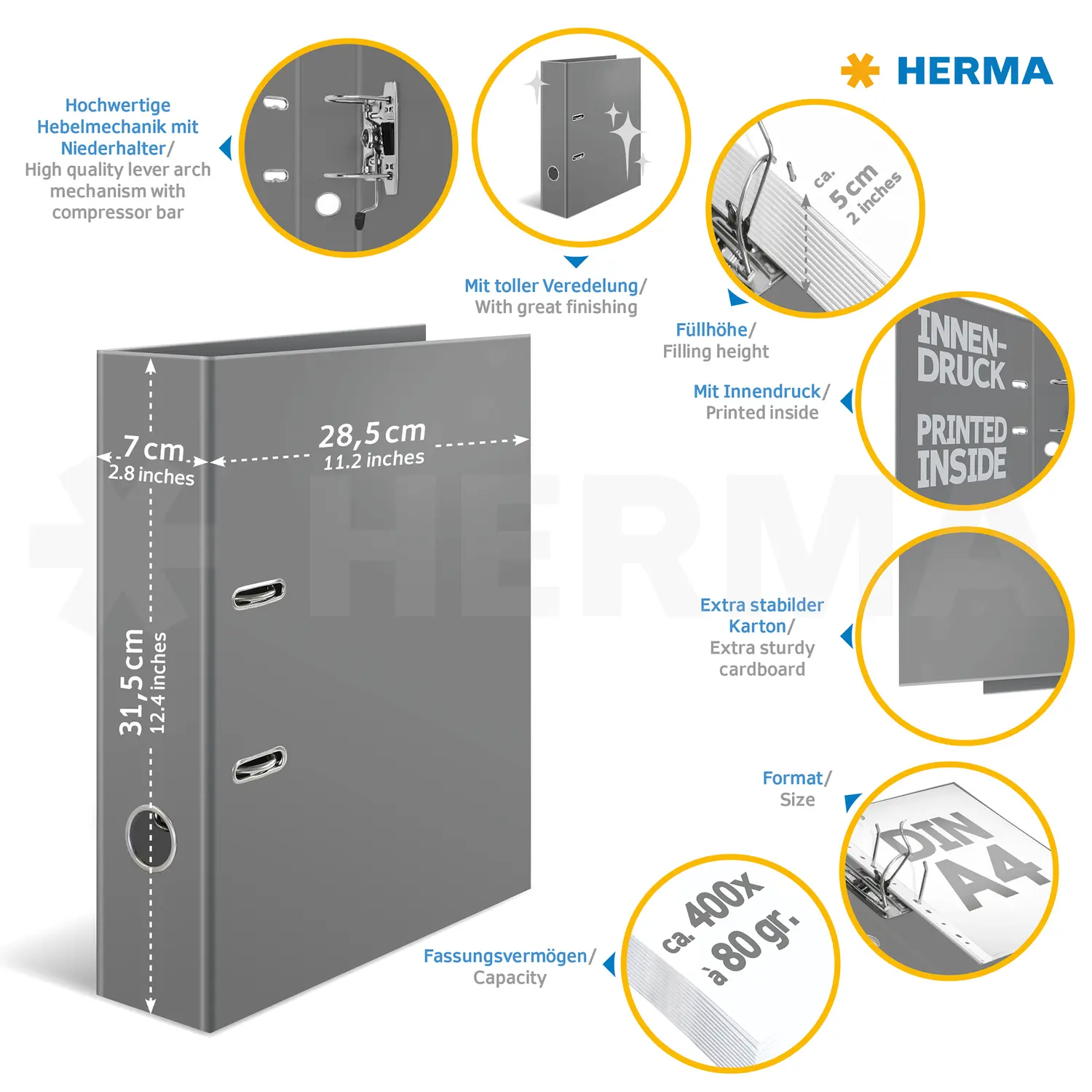 • Hochwertiger Ordner aus stabilem Karton, mit farbigem Innendruck, Rückenbreite 70 mm, geeignet für DIN A 4