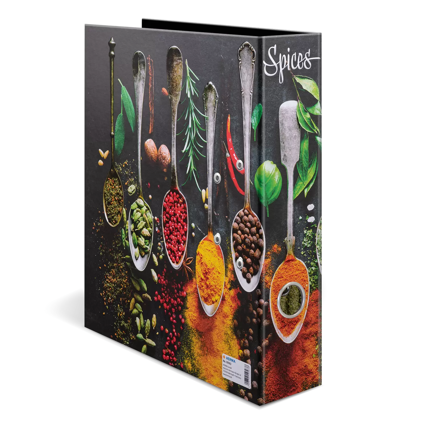 Spice it up! Was wäre das Leben ohne etwas Würze? Die HERMA Motivordnerserie "Flavors" entführt sie auf eine kulinarische Reise der besonderen Art: eine Wonne für Augen und Ordnungssinn. Das besondere Extra: die hochwertige Veredelung, die den edlen Ordner zum absoluten High-End-Produkt macht. Glanz und Genuss auf höchstem Niveau. Mit dem HERMA Motiv-Ordner "Spices" bringen sie Pfeffer in den Alltag! Gewürze haben eine lange bewegte Geschichte. Ihretwegen brachen Seeleute in ferne Länder auf, suchten neue Seewege, erlebten Abenteuer und nahmen große Gefahren auf sich. Heute kennen wir eine Vielzahl an Aromen und Düften, die unsere Speisen und Getränke bunter, schmackhafter und vielfältiger machen. Holen Sie sich die bunte Palette der beliebtesten Gewürze in Küche, Büro, Arbeits- und Wohnzimmer – eine Prise Geschmack für Ordnung mit Pfiff.