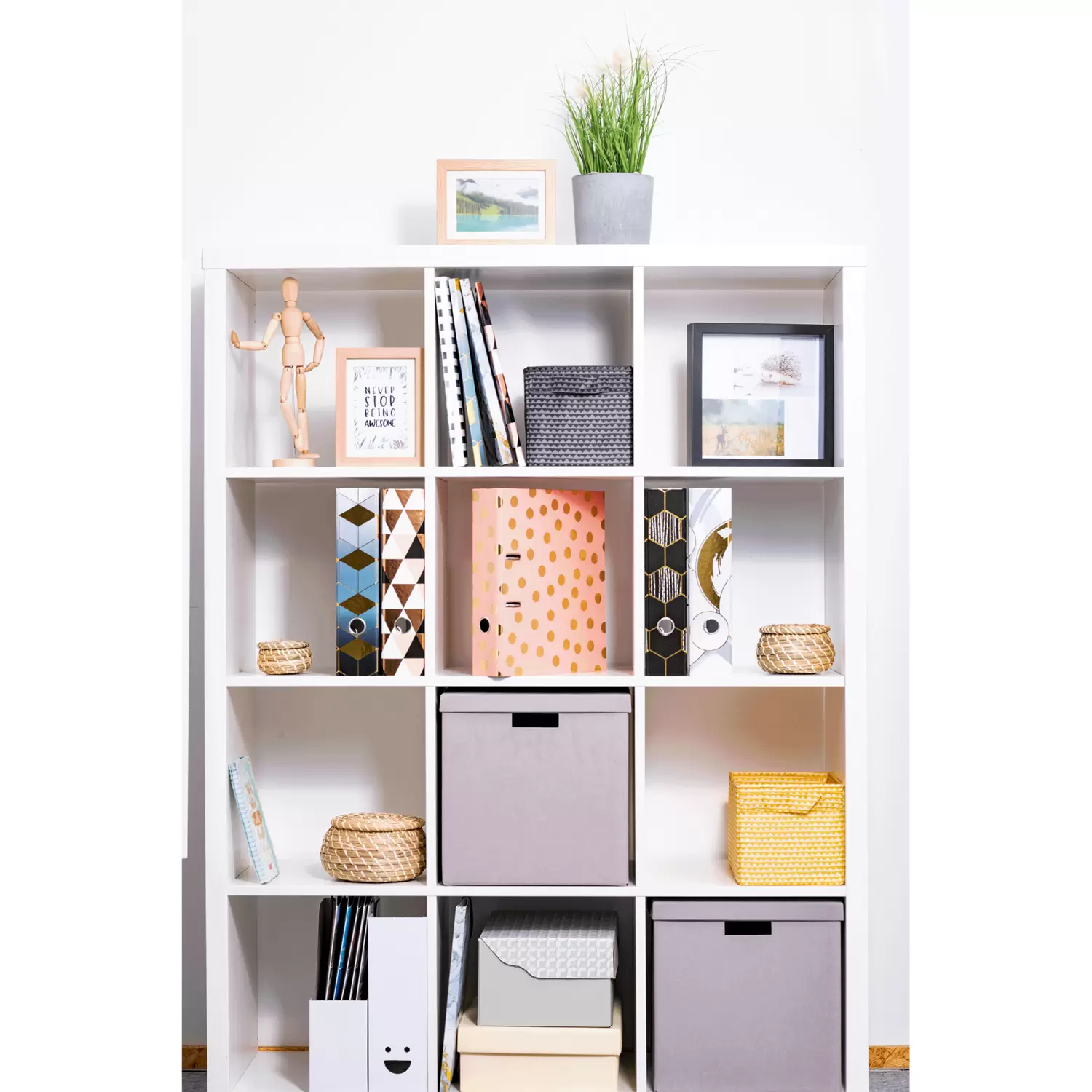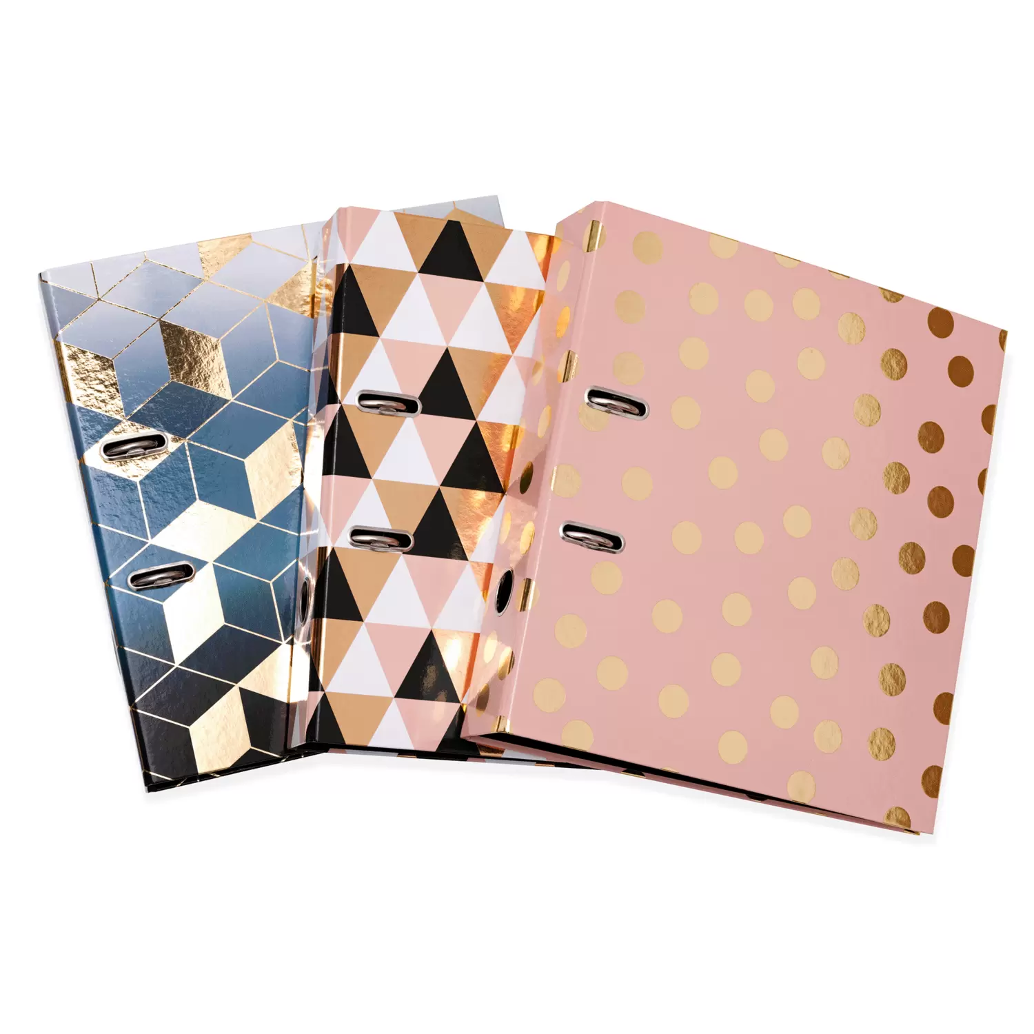 Wenn Ihnen Funktionalität genauso wichtig ist wie originelles Design, ist dieser moderne Motivordner in der Größe DIN A4 mit folienveredelten Punkten in Gold bestens geeignet, um Ordnung und Struktur in Ihren Arbeitsalltag zu bringen. Der Karton, aus dem der Motivordner angefertigt ist, ist umweltfreundlich und schützt den Inhalt optimal vor Außeneinflüssen. Ob in der Schule, Uni oder im Büro, als praktischer Helfer bringt der Ordner Stuktur und eine effiziente Arbeitsweise in den Alltag. Neben den schlichten, aber eleganten Punkten auf einem Hintergrund in wunderschönem Altrosa, kommen die Folienveredelungen noch besser zur Geltung. Der Ordner mit Motiv und Innendruck ist für sämtliche Zettel im DIN A4 Format aus der Schule, Uni oder dem Büro geeignet und kann auch für wichtige Dokumente im Alltag die optimale Lösung sein. Durch die integrierte Hebelmechanik lassen sich die Ringe des stabilen Ordners einfach öffnen bzw. schließen und garantieren ein leichtes Ein- und Ausheften. Papiere einzuordnen oder umzuheften ist dadurch total einfach. Der Niederhalter aus Metall hält das Ganze praktisch und zuverlässig beisammen. Am Rücken des 70 mm breiten Ordners aus Karton befindet sich ein praktisches Griffloch, durch das der Ordner einfach aus dem Regal geholt oder wieder hineingeschoben werden kann. Ergänzend bietet HERMA auch eine Ordnungsmappe an, die im gleichen Design gestaltet ist. Bereiten Sie Ihrem Papier-Chaos ein Ende, mit diesem modernen Ordner von HERMA.