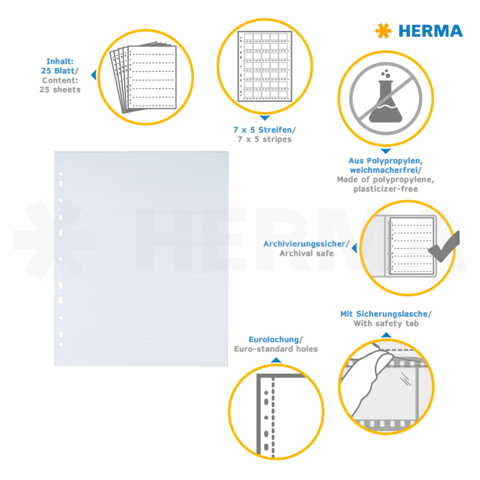 Negativhüllen, transparent, für 7 x 5 Streifen, 25 St.