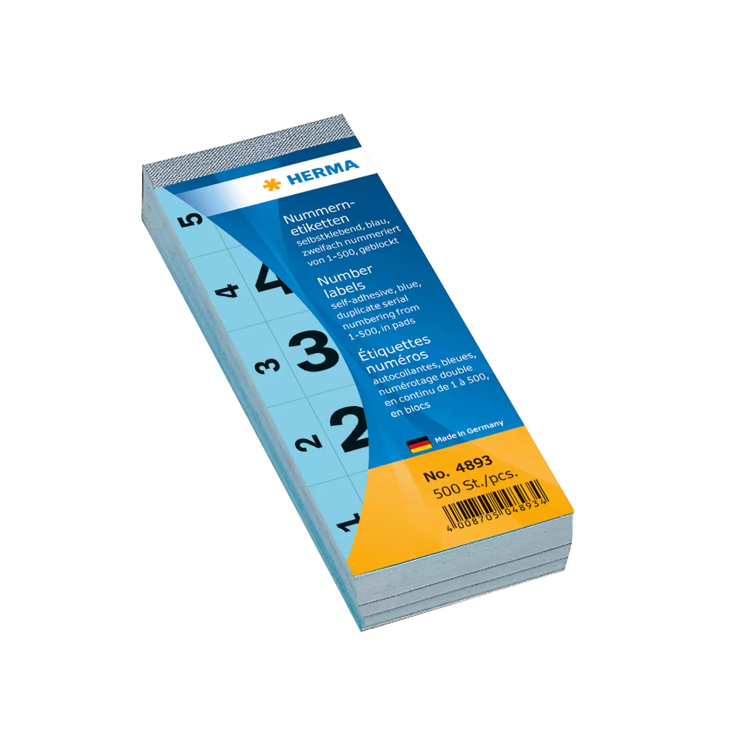 Nummernblock 1-500, blau, selbstklebend, 28 x 56 mm