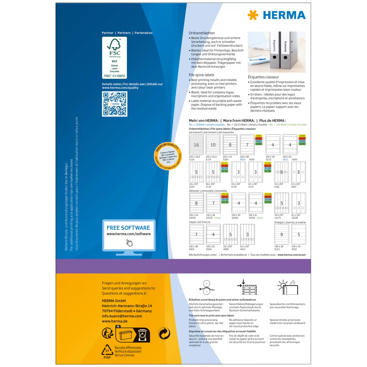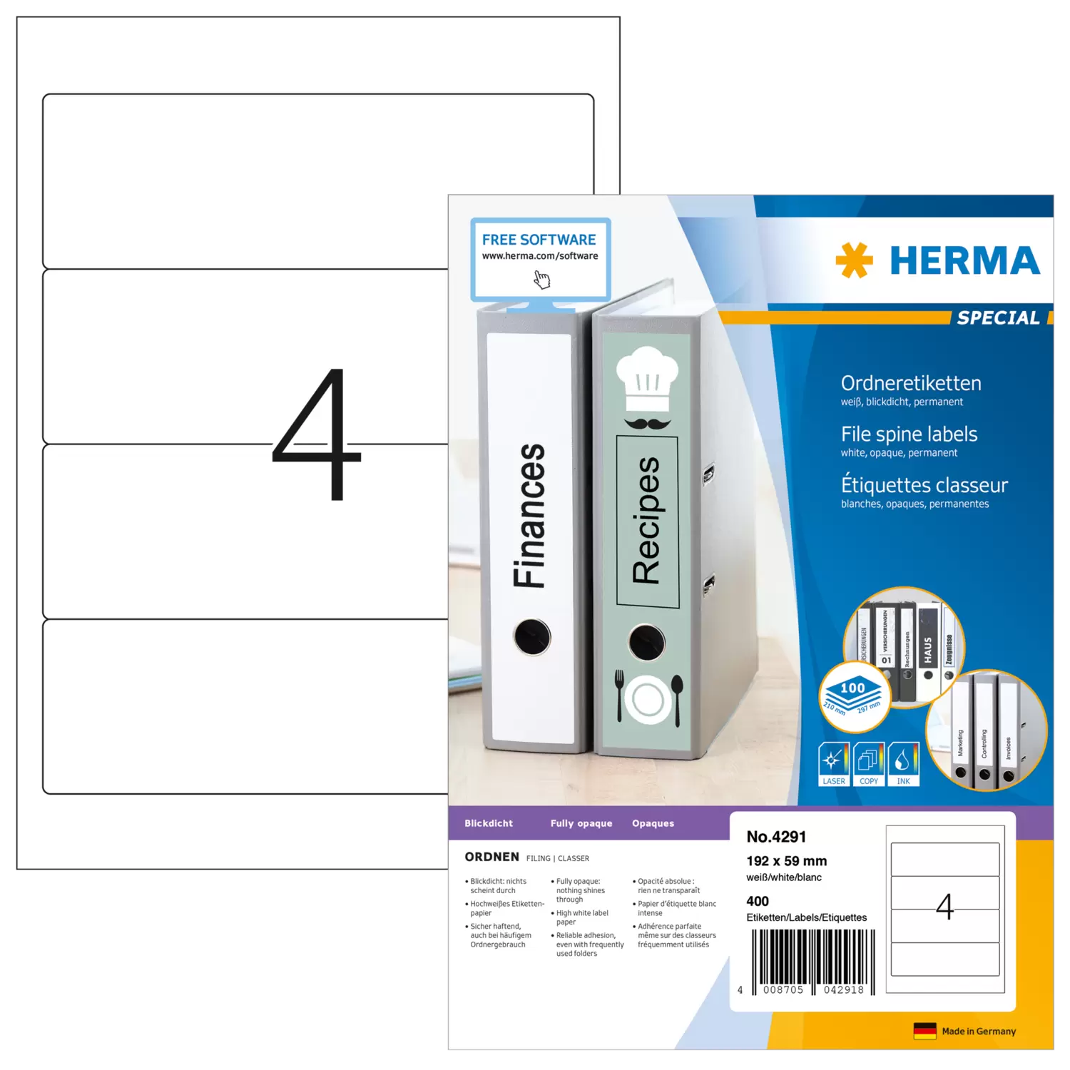 Ordneretiketten A4, 192 x 59 mm, weiß, blickdicht, permanent haftend, für breite Ordner (kurz)