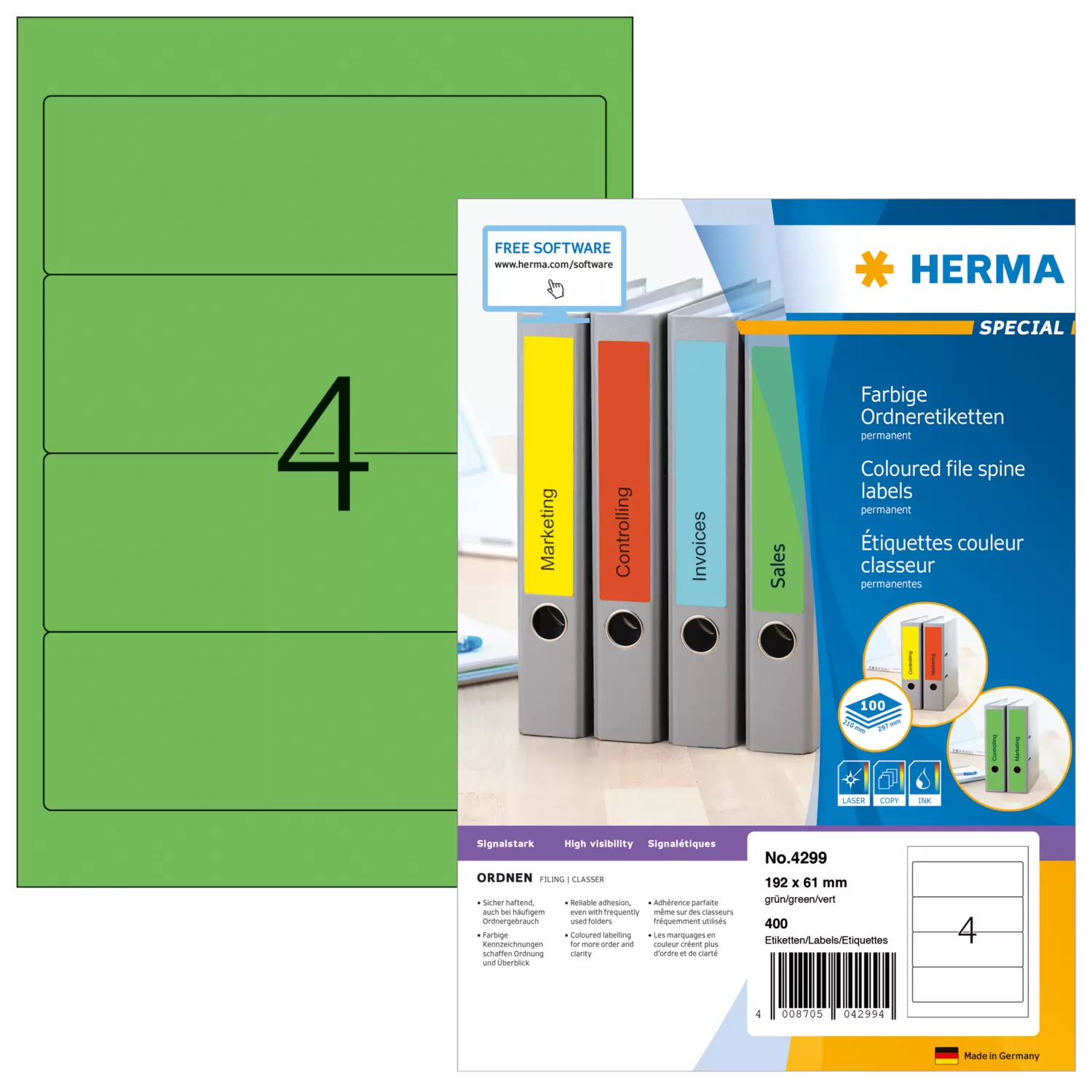Ordneretiketten A4, 192 x 61 mm, grün, permanent haftend, für breite Ordner (kurz)
