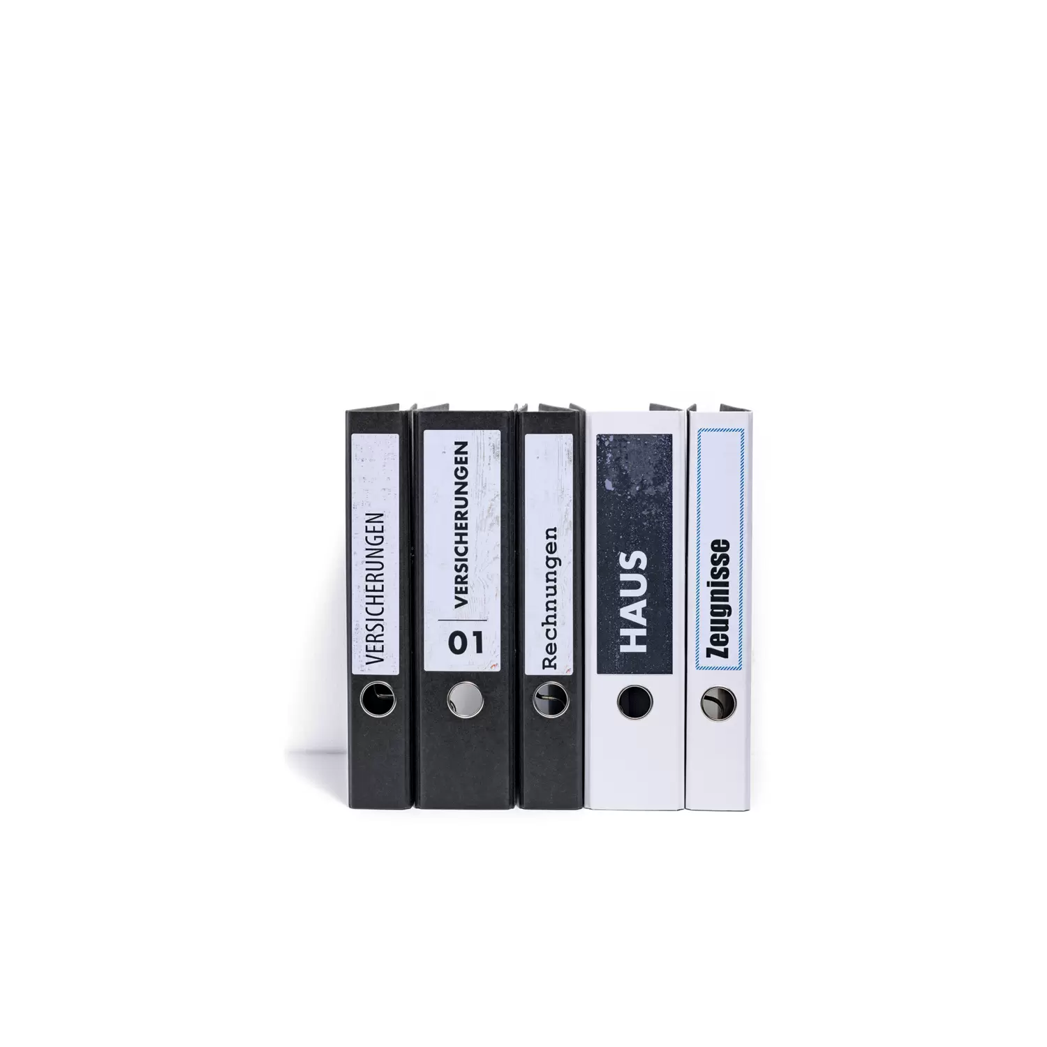 - Ordnerrücken-Schilder haften sicher, auch bei häufigem Ordnergebrauch