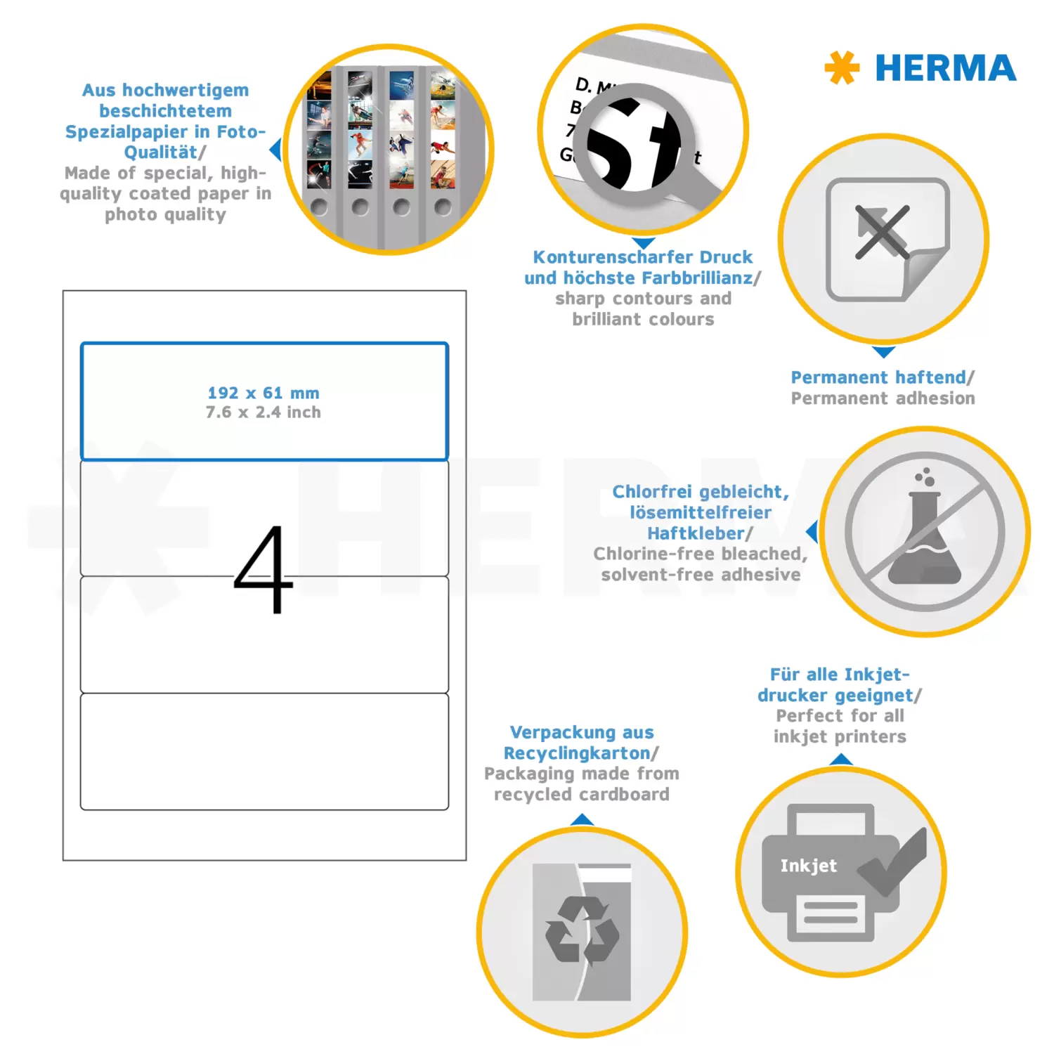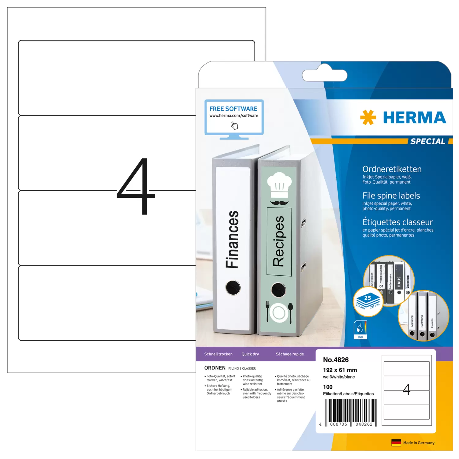Inkjet-Ordneretiketten A4, 192 x 61 mm, weiß, permanent haftend, für breite Ordner (kurz)