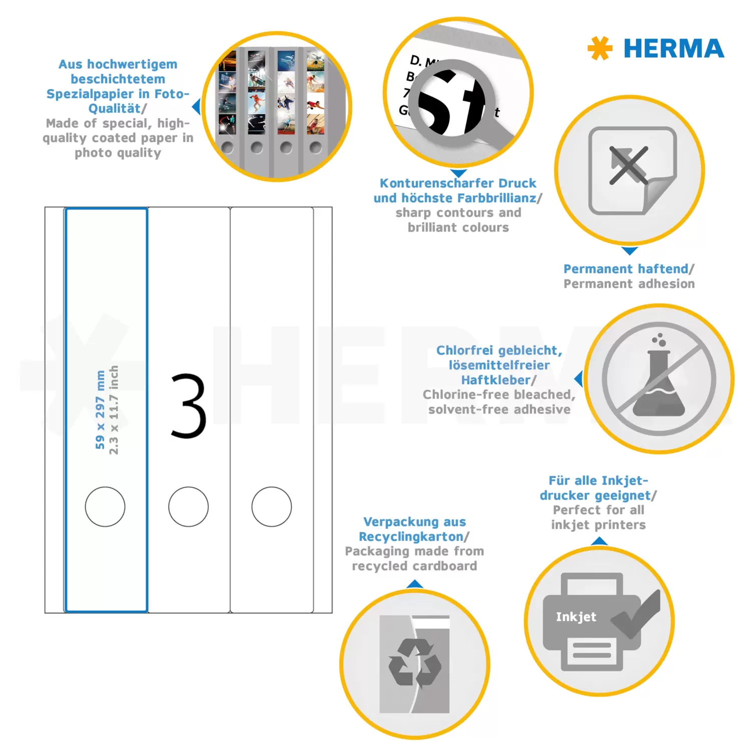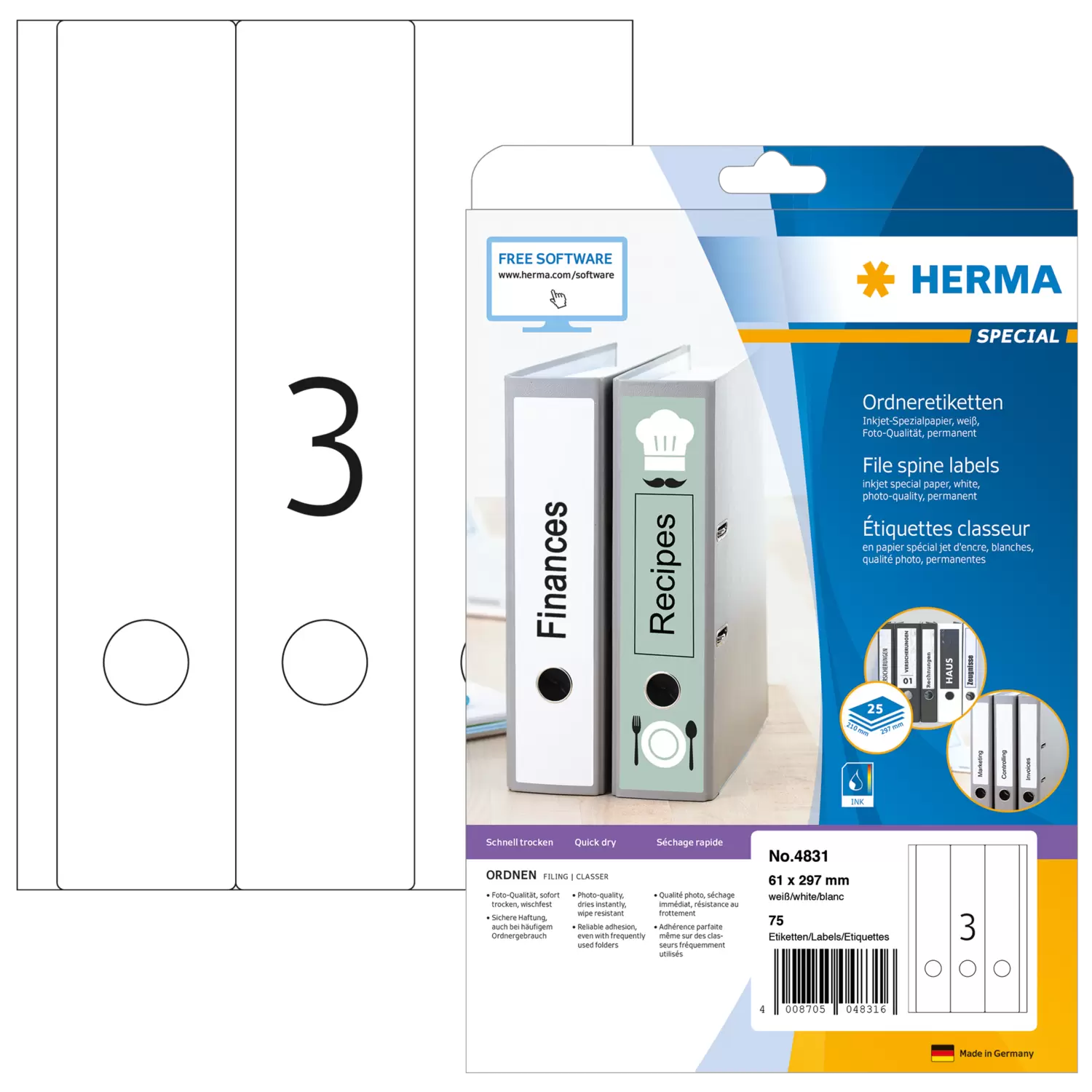 Inkjet-Ordneretiketten A4, 61 x 297 mm, weiß, permanent haftend, für breite Ordner (lang)