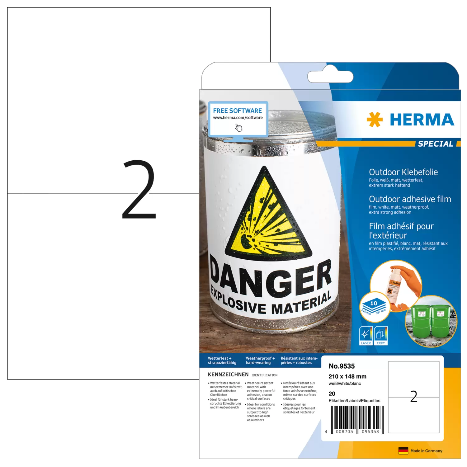 Wetterfeste Outdoor-Folienetiketten A4, 210 x 148 mm, weiß, extrem stark haftend, dehnfähig