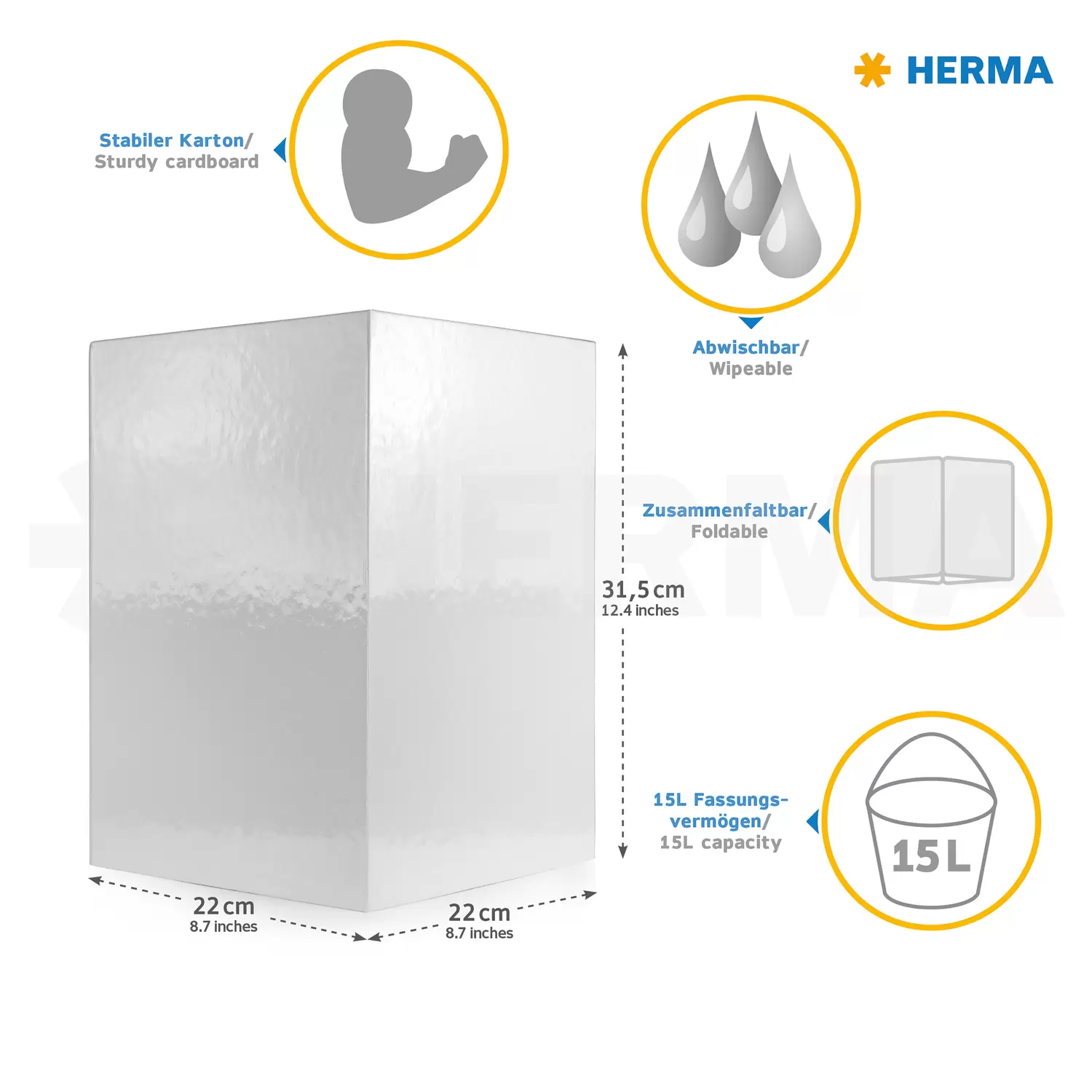 • Stabiler Papierkorb aus abwischbarem Karton