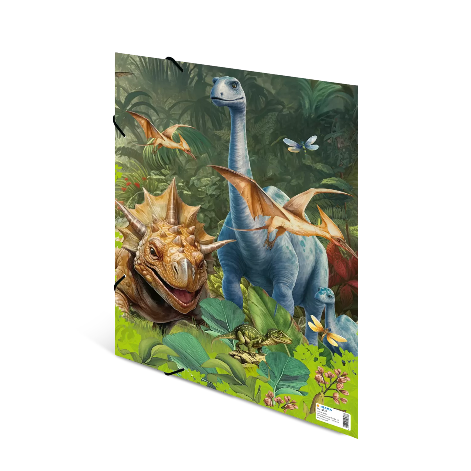 In der Welt der prähistorischen Giganten gibt es eine neue Attraktion: Die Sammelmappen mit coolem Dinosaurier-Motiv! Mit viel Liebe zum Detail und einer realistischen Darstellung, die das Herz jedes Dino-Fans höher schlagen lässt, ist diese Sammelmappe ein echtes Highlight. Jeder Dinosaurier wurde sorgfältig und detailgetreu gezeichnet, um die Faszination und den Zauber dieser längst ausgestorbenen Kreaturen einzufangen. Praktisch und robust - das ist Qualität von HERMA. Die Mappe misst 44 cm x 33,5 cm und ist damit groß genug für Papiere, Zeichnungen und Dokumente bis zu einer Größe von DIN A3. Sie ist aus stabilem Karton gefertigt und lässt sich durch zwei hochwertige Eckspanner einfach öffnen und verschließen. Durch die drei Innenklappen wird der Inhalt geschützt und auch kleinere Schriftstücke können nicht herausfallen. Die Dinos sind los - ROOOOARRRRRR!