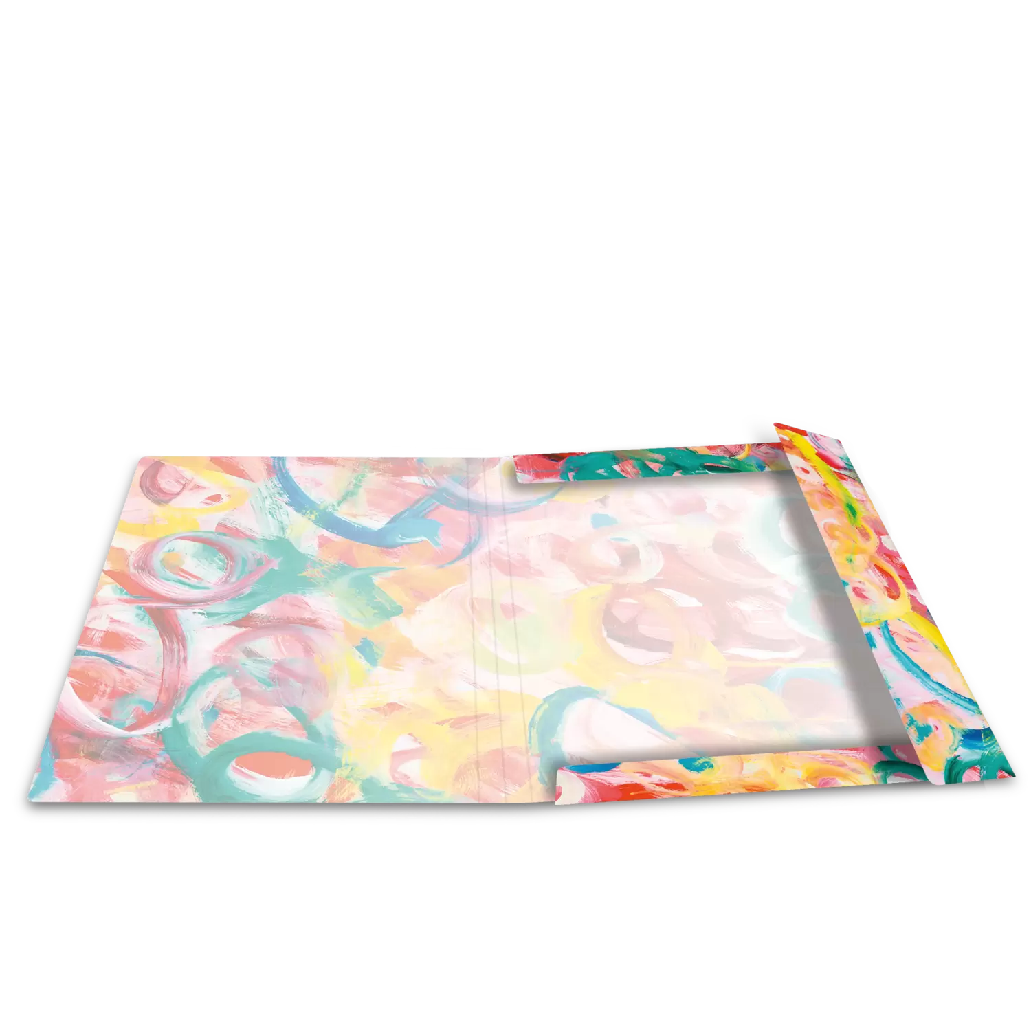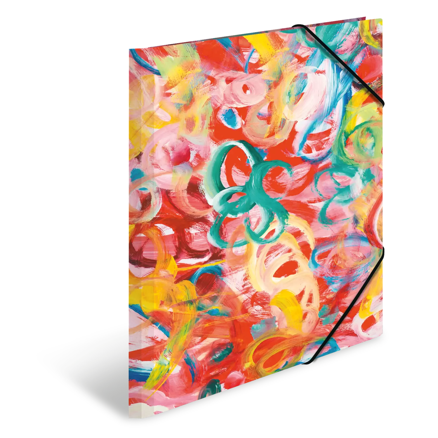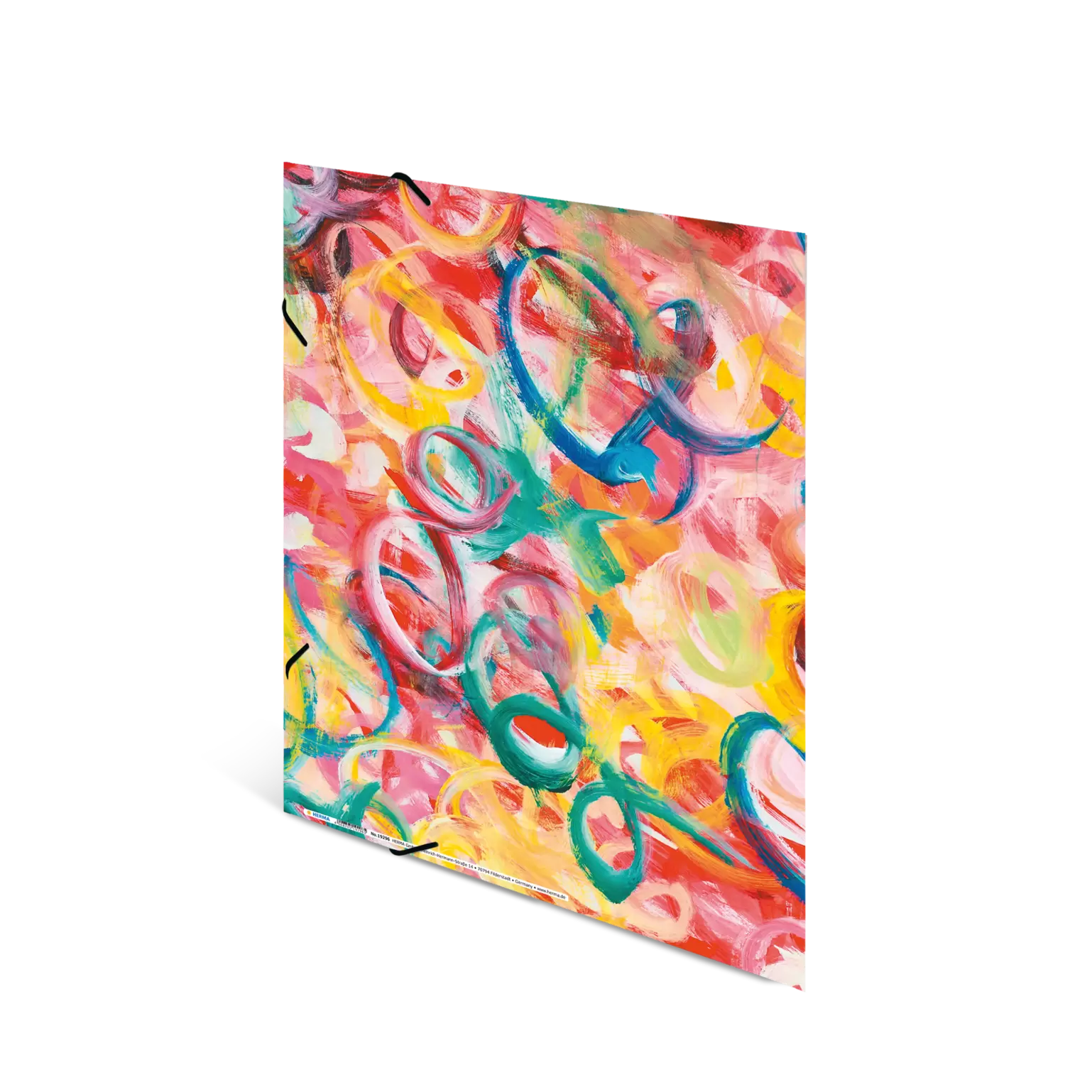 Schluss mit dem Papierchaos! Mit der neuen Sammelmappe „Malerei“ von HERMA bringen Sie Ordnung in Ihre Unterlagen. Die bunte und cool designte Mappe ist ideal, um wichtige Papiere zu verstauen und bei Bedarf schnell wieder zu finden. So kann alles Wichtige leicht vom Arbeitsplatz, der Schule, dem Kindergarten oder der Universität nach Hause transportiert werden. Diese auffällige und moderne Gummizugmappe ist ideal für Künstler und Kreative, jeden Alters. Die Ordnungsmappe aus stabilem Karton, misst 44 cm x 33,5 cm und ist damit groß genug für Kunstwerke, Entwürfe, Skizzen, Fotografien, Papiere, Zeichnungen und Dokumente bis zu einer Größe von DIN A3. Sie ist mit qualitativ hochwertigen Eckspannern ausgestattet, die den Inhalt so zusammenhalten, dass er nicht herausfallen und verloren gehen kann. Auch sind Papiere vor Schmutz, Dreck und anderen Außeneinflüssen optimal geschützt, da die Ordnungsmappe von HERMA über drei integrierte Innenklappen verfügt.