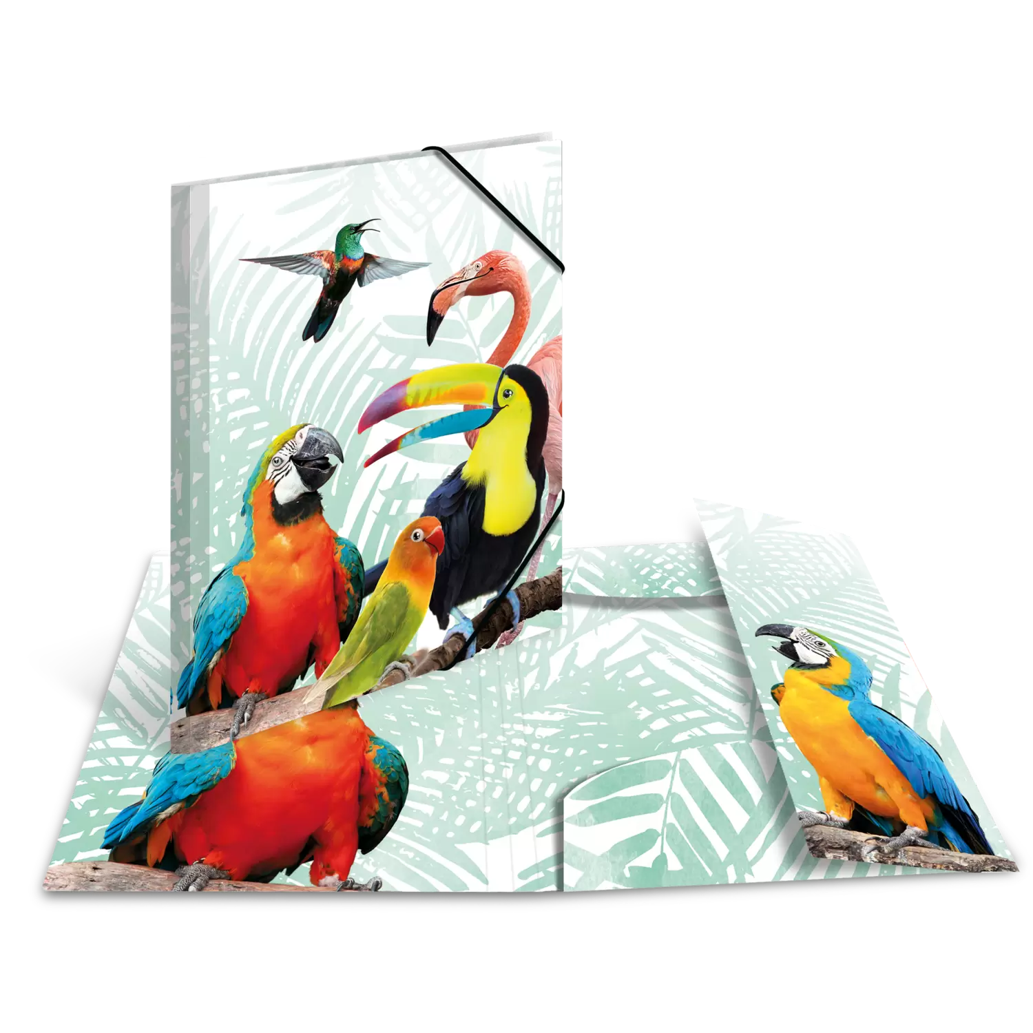 • Sammelmappe, Design-Serie Exotische Tiere, Motiv Tropenclique, lachend: schnatternd, fröhlich und bunt