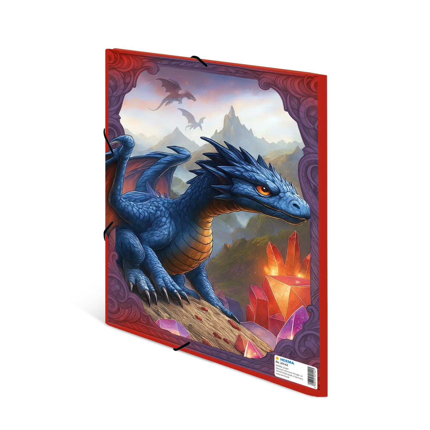 Jetzt wird's heiß: Die magischen Drachen sind im Anflug! Das liebevoll illustrierte Design zeigt die fantastischen Lebewesen in Action: Feuerspeiend, im Flug und unterwegs mit ihren treuen Drachenreitern. Das perfekte Motiv fuer fantasievolle Drachen-Fans. Praktisch und robust. Das ist Qualität von HERMA. Die Mappe misst 32 cm x 24 cm und ist damit groß genug fuer Papiere, Zeichnungen und Dokumente bis zu einer Größe von DIN A4. Sie ist aus stabilem Karton gefertigt und lässt sich durch zwei hochwertige Eckspanner einfach öffnen und verschließen. Das praktische Inhaltsverzeichnis zum Selbstbschriften sorgt fuer Ordnung und Struktur innerhalb der Mappe. Durch die drei Innenklappen wird der Inhalt geschuetzt und auch kleinere Schriftstuecke können nicht herausfallen.