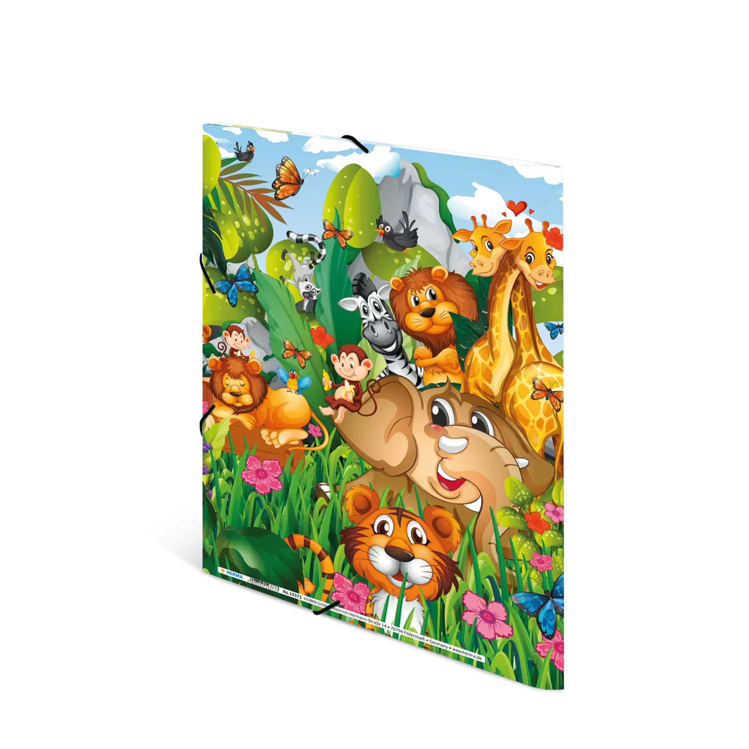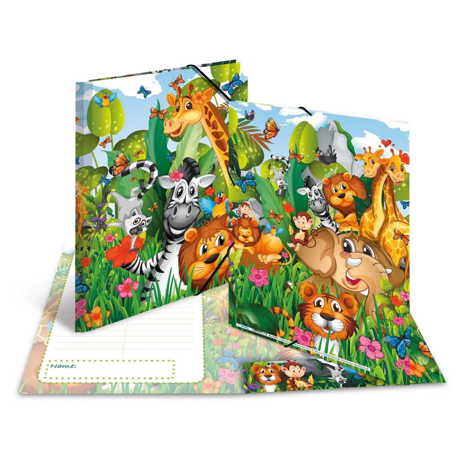 Jetzt wird's wild! Die tierisch gut gestaltete Sammelmappe zeigt verschiedene Dschungelbewohner im farbenfrohen Design. Die Mappe misst 32 cm x 24 cm und ist damit groß genug für Papiere, Zeichnungen und Dokumente bis zu einer Größe von DIN A4. Sie ist aus stabilem Karton gefertigt und lässt sich durch zwei hochwertige Eckspanner einfach öffnen und verschließen. Durch die drei Innenklappen wird der Inhalt geschützt und auch kleinere Schriftstücke können nicht herausfallen.