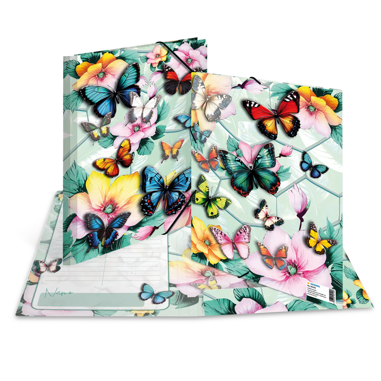 Willkommen im Traumgarten: Zarte Blüten kombiniert mit eleganten Schmetterlingen in wunderschönen Pastellfarben. Diese Sammelmappe ist mit viel Liebe und Feingefühl für's Detail ein absoluter Hingucker. Die filigranen Schmetterlinge erwachen dank der leuchtenden Farben beinahe zum Leben. Von leuchtendem Blau über sonniges Gelb bis hin zu zartem Rosa. hier schlägt das Herz jedes Naturliebhabers höher. Praktisch und robust. das ist Qualität von HERMA. Die Mappe misst 32 cm x 24 cm und ist damit groß genug für Papiere, Zeichnungen und Dokumente bis zu einer Größe von DIN A4. Sie ist aus stabilem Karton gefertigt und lässt sich durch zwei hochwertige Eckspanner einfach öffnen und verschließen. Das praktische Inhaltsverzeichnis zum Selbstbschriften sorgt für Ordnung und Struktur innerhalb der Mappe. Durch die drei Innenklappen wird der Inhalt geschützt und auch kleinere Schriftstücke können nicht herausfallen.