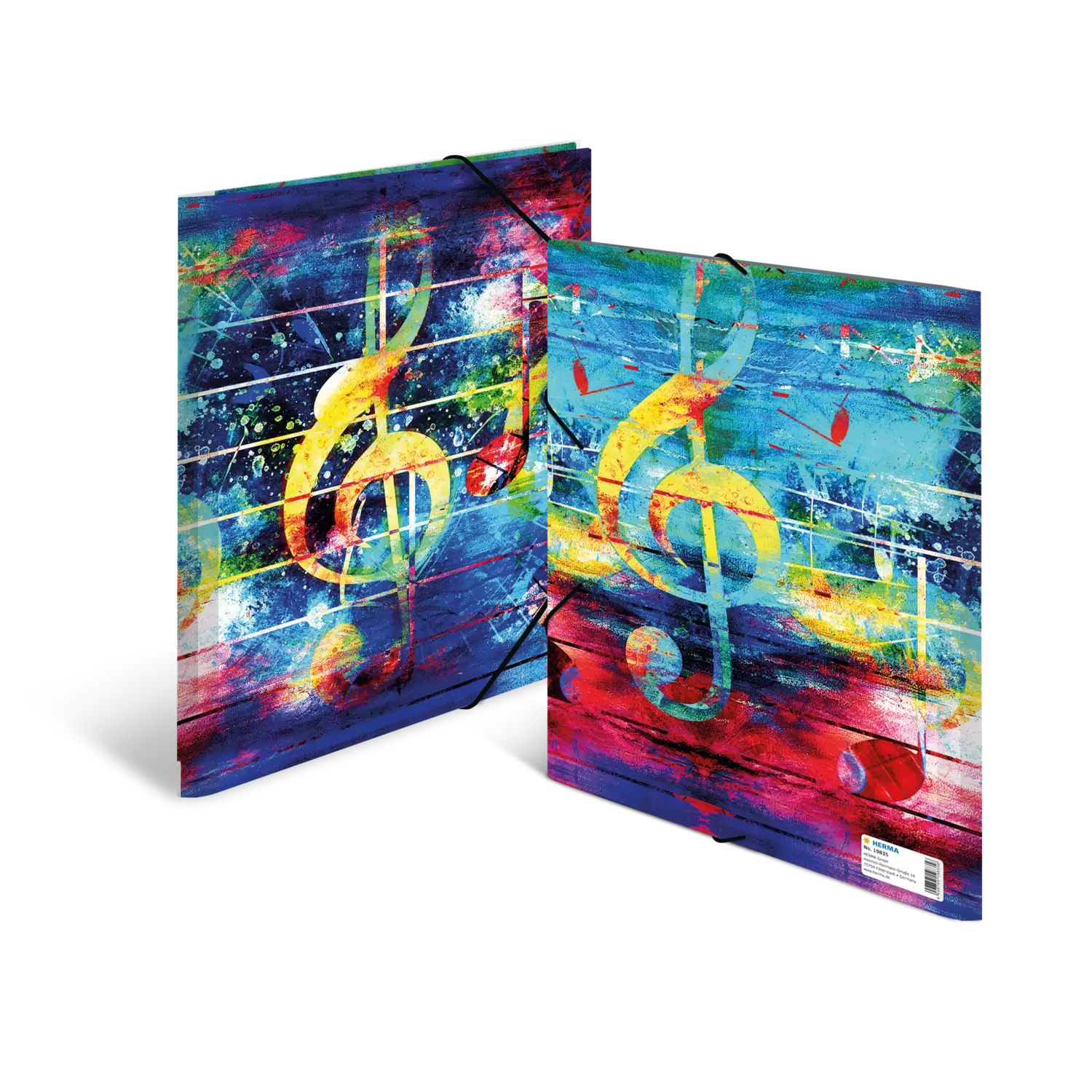 Schluss mit dem Papierchaos! Mit der neuen Sammelmappe „Music“ von HERMA bringen Sie Ordnung in Ihre Unterlagen. Die stylisch cool designte Mappe ist ideal um wichtige Papiere zu verstauen und bei Bedarf schnell wieder zu finden. Aufgrund ihrer handlich kompakten Größe sind die Sammelmappen für Schriftstücke bis zu einer Größe von DIN A4 bestens geeignet und lassen sich unkompliziert im Rucksack, der Schultasche oder in der Aktentasche verstauen. So kann alles Wichtige leicht vom Arbeitsplatz, der Schule oder Universität nach Hause transportiert werden. Diese schicke, zugleich aber auch auffällige und moderne Gummizugmappe im knallig bunten Music-Design sticht zwischen vielen anderen Mappen aufgrund der einzigartigen Aufmachung sofort heraus. Sie ist ideal für Musiker und Musikbegeisterte zur Aufbewahrung von Noten und Notenblättern, Gitarrentabulaturen, Ideen für Songs und musikalische Inspiration, für Kundenbesuche, Auftragsarbeiten und Präsentationen. Aber auch Komponisten, Gitarristen, Klavierspieler und Musikfans und Alle, die sich für Kultur, Musik, Instrumente und Komposition interessieren, für Fans von Klassik, Jazz, Blues und Folk ist diese Mappe geeignet. Das einzigartige Design „Music“ sorgt definitiv für einen Hingucker im Büro und in der Schule. Die Ordnungsmappen eignen sich zum Aufbewahren und Sortieren loser Blätter, Unterlagen, Notizen oder wichtiger Briefe und sind ausgestattet mit qualitativ hochwertigen Eckspannern, die den Inhalt so zusammenhalten, dass er nicht herausfallen und verloren gehen kann. Auch sind Papiere vor Schmutz, Dreck und anderen Außeneinflüssen optimal geschützt, da die Ordnungsmappe von HERMA über drei integrierte Innenklappen verfügt. Zudem sind sie äußerst strapazierfähig und abwaschbar. Aus stabilem Po lypropylen hergestellt, tragen Mappen der Ordnung bei und verleihen Überblick über verschiedenstes Schriftgut.