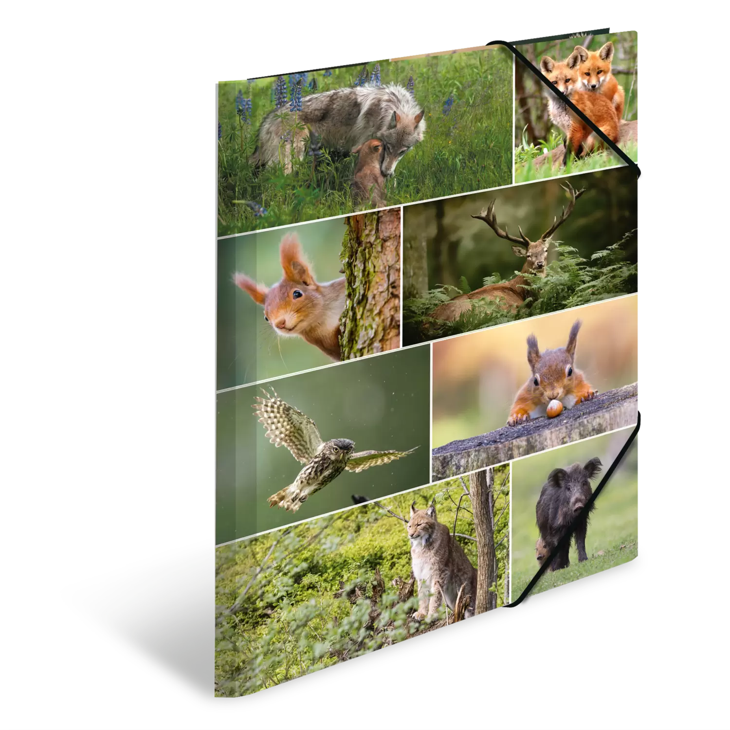 Waldfans aufgepasst! Wer Tiere liebt und seine Zeit gerne in der Natur, im Wald, auf Wiesen, Weiden und Feldern verbringt, wird eine Riesenfreude an dieser Sammelmappe, die innen und außen mit vielen verschiedenen Waldtierfotografien bedruckt ist, haben. Mit dabei sind Eichhörnchen, Füche, Rehe, Hasen und viele mehr! Die Mappe misst 44 cm x 33, 5 cm und ist damit groß genug für Papiere, Zeichnungen und Dokumente bis zu einer Größe von DIN A3. Sie ist aus stabilem Karton gefertigt und lässt sich durch zwei hochwertige Eckspanner einfach öffnen und verschließen. Durch die drei Innenklappen wird der Inhalt geschützt und auch kleinere Schriftstücke können nicht herausfallen.