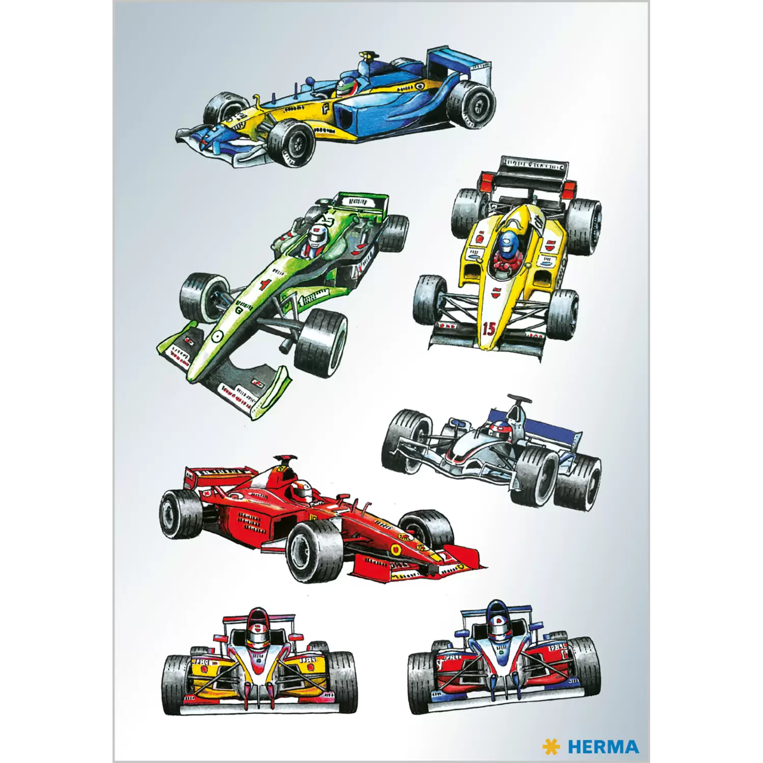 Ferrari, Mercedes, Renault. Die Formel 1, ihre Fahrer und vor allem die Rennautos sind absolute Legenden und begeistern Groß und Klein seit Generationen. Rennautos haben über Jahrzehnte nichts von ihrem Reiz verloren und sind beliebt bei jedem Autofan. Diese coolen Rennauto Sticker von HERMA sind ein Muss für jeden, der verrückt nach Autos ist. Jedoch können nicht nur Autoliebhaber mit diesen permanent haftenden Aufklebern ihre helle Freude haben. Jeder der gerne sammelt, tauscht oder Dinge individualisiert sollte diese Sticker haben. 3 Bögen mit je 7 verschiedenen Stickern befinden sich in einer Packung.