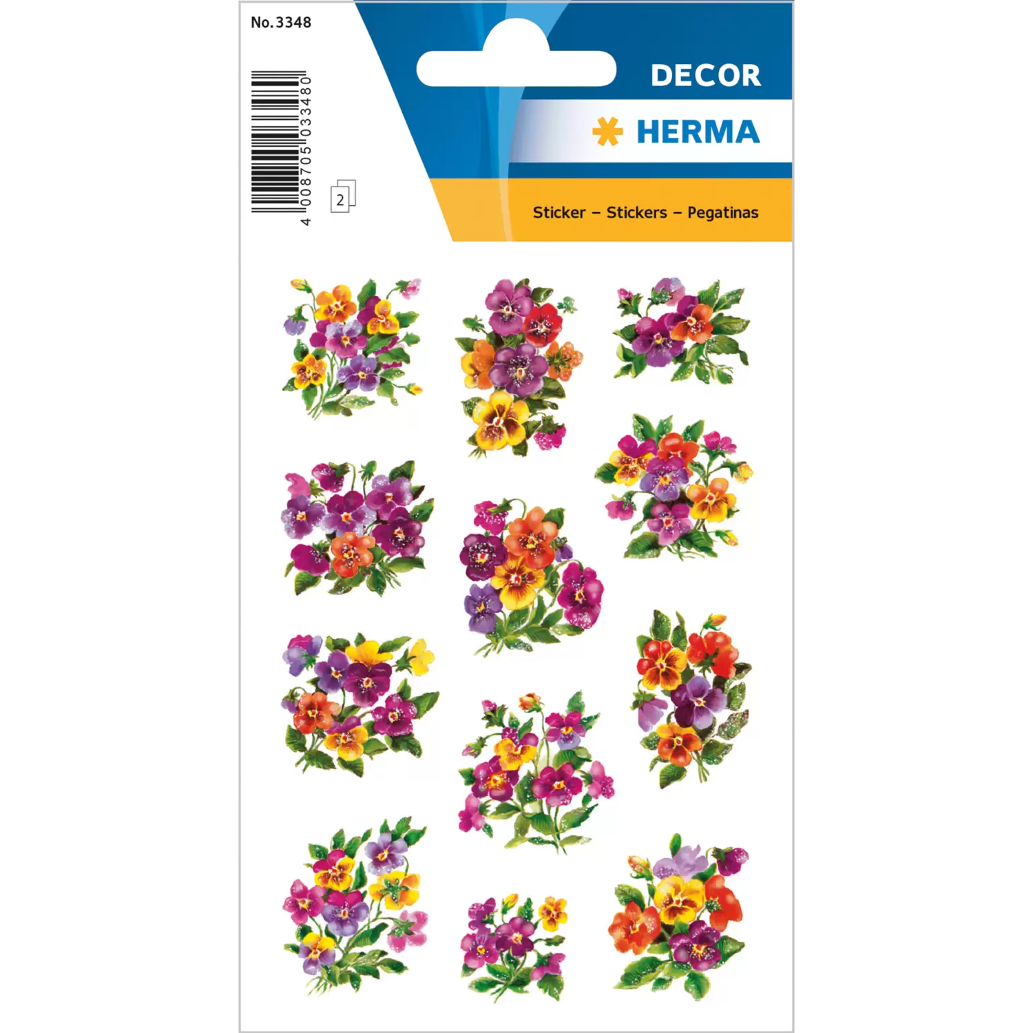 Veilchen gelten als Symbol für Treue, Frühling und Hoffnung. Nicht nur deshalb sind Veilchen außergewöhnlich schöne Blumen. Diese wunderschönen, farbenfrohen Sticker mit Veilchengestecken von HERMA begeistern garantiert jeden Blumenliebhaber. Auch Menschen, die sonst nicht viel mit Blumen anfangen können, werden mit den liebevoll gestalteten Aufklebern garantiert ihre Freude haben. Die selbstklebenden Sticker eignen sich hervorragend, um beispielsweise schlichte Geschenkverpackungen, Grußkarten oder triste Alltagsgegenstände optisch aufzuwerten, zu verzieren und ihnen eine persönliche Note zu verpassen. Dank ihrer beglimmerten Oberfläche sind die Sticker mit Veilchengestecken ein echter Blickfang. In einer Packung sind insgesamt 24 permanent haftende Sticker in unterschiedlichen Größen und Blumenstrauß-Motiven enthalten.