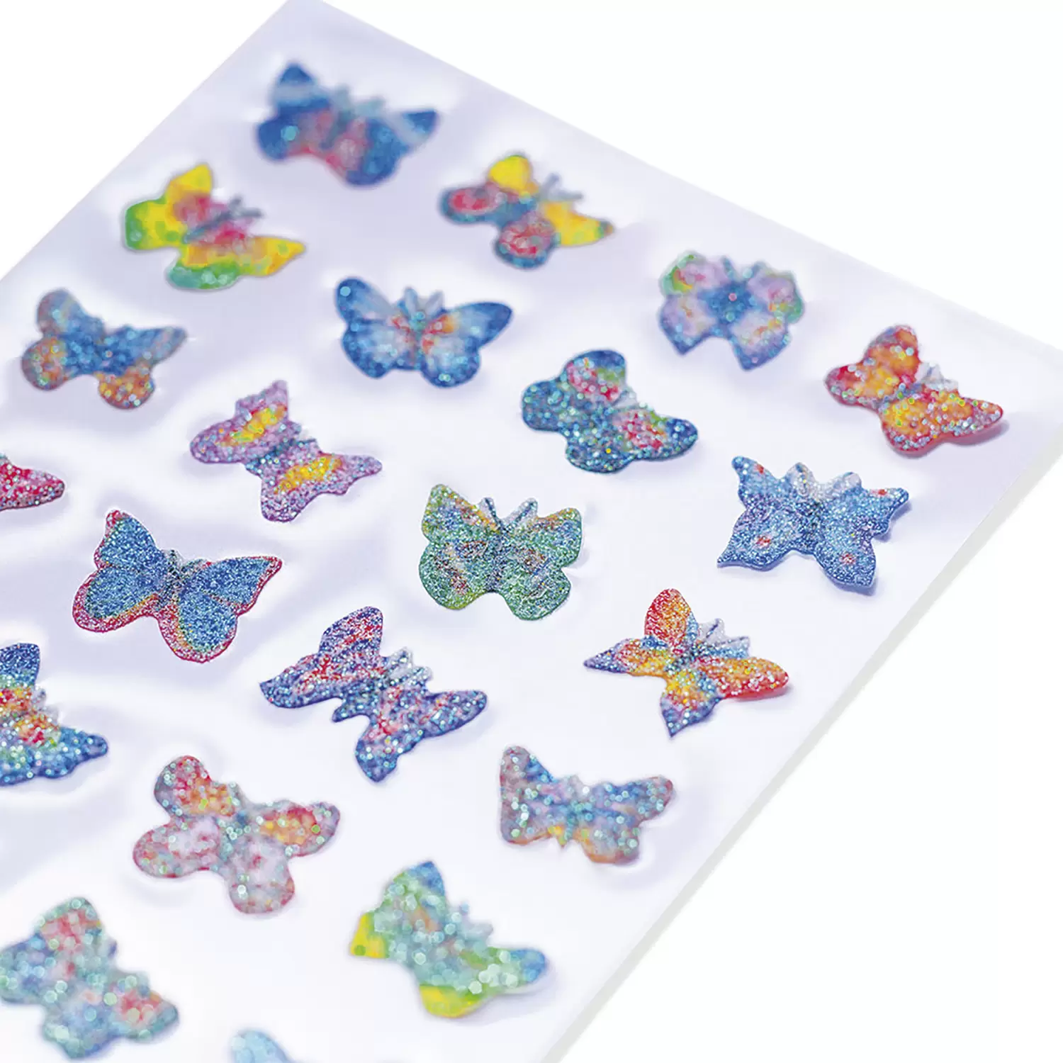 Der 28-teilige Stickerbogen "Schmetterlinge" von HERMA begeistert garantiert nicht nur Kinder und Schmetterlingsliebhaber. Die Sticker sind wie dafür gemacht, um Schulhefte zu verzieren, Karten oder Einla dungen zu gestalten, langweilige Aufbewahrungsboxen aufzuwerten oder sie einfach zu Sammeln oder zu verschenken. Selbstverständlich gibt es noch unzählige weitere Möglichkeiten diese farbenfrohen und aufregenden Sicker zu verwenden. Sie laden dazu ein seiner Kreativität freien Lauf zu lassen und eigene Klebeideen umzusetzen. Die selbstklebenden Sticker aus Glitterfolie sind permanent haftend und in Packungen mit je einem Blatt und 32 Stickern mit unterschiedlichen, bunten Schmetterlings Motiven erhältlich.