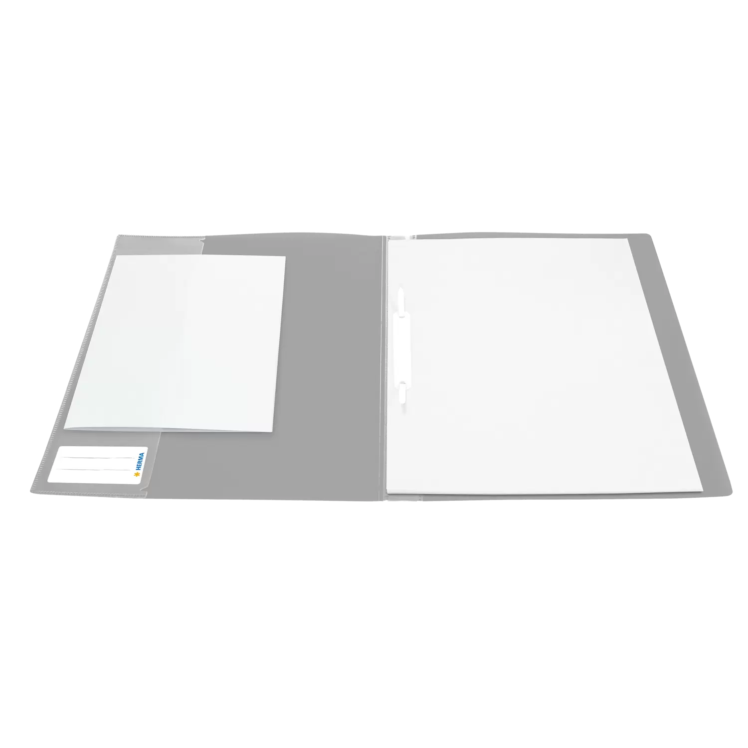 - Schnellhefter für A4 aus umweltfreundlicher, starker transluzenter Polypropylen-Folie mit Metallheftzunge, in 14 Farben, mit Beschriftungsetikett und Einstecktasche