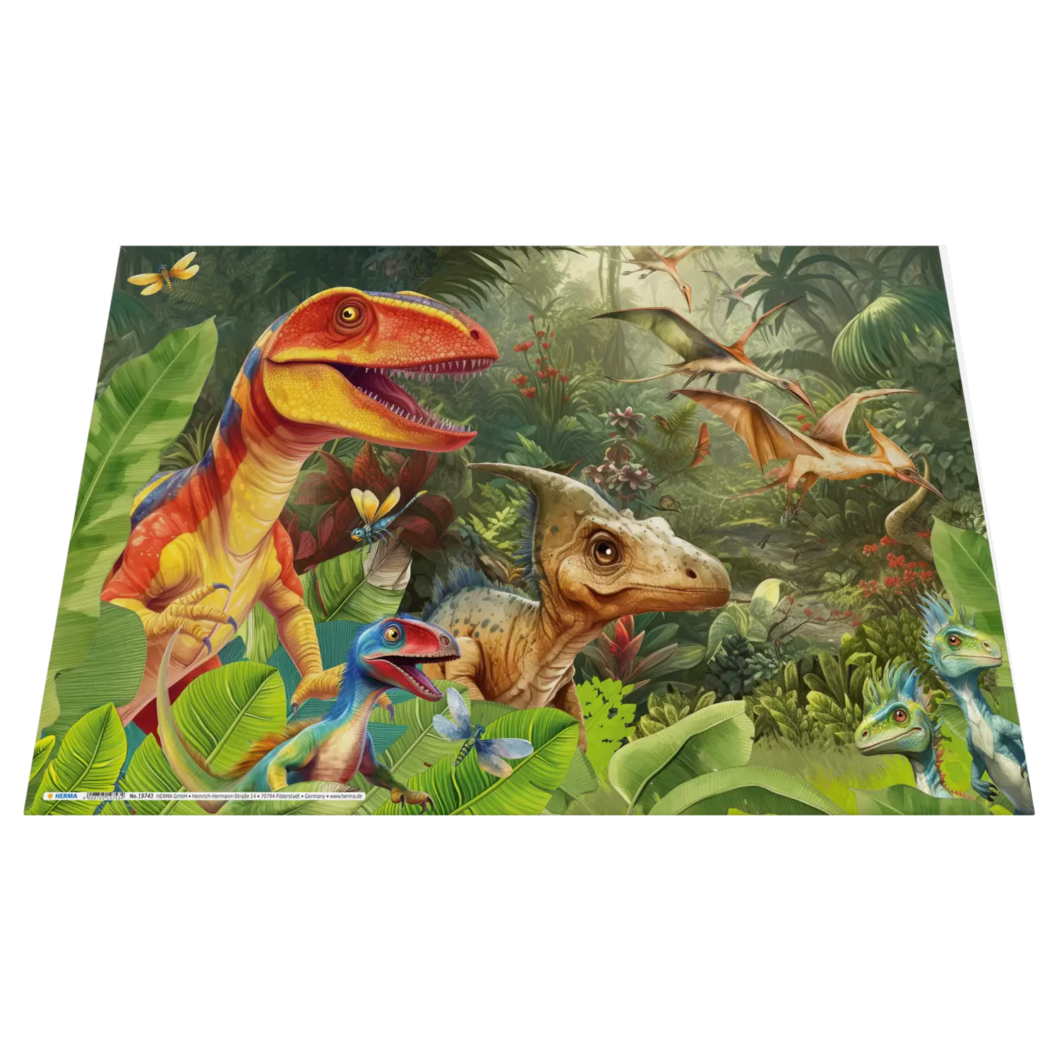 Die stabile Schreibunterlage mit dem coolen Dino-Motiv ist der Hit bei Kindern und Jugendlichen! Die Unterlage sieht nicht nur super aus, sie lässt sich auch gut reinigen und schont den Schreibtisch. Schreiben, Malen, Kneten, Basteln: Eine saubere Sache. Die Schreibunterlage ist ein wahrer Hingucker auf dem Schreibtisch. Sie ist für Links- und Rechtshänder gleichermaßen geeignet, da sie keinen störenden Rand oder andere Merkmale aufweist, die das Malen oder Schreiben behindern könnten. Die Schreibtischunterlage von HERMA ist zudem sehr leicht von Dreck und Schmutz zu befreien, da die Oberfläche glatt und leicht abwaschbar ist. Sie schützt glatte, empfindliche Oberflächen vor Kratzern oder anderen Beschädigungen, die im Alltag schnell auftreten können. Zudem ist sie beidseitig verwendbar - einfach die Unterlage umdrehen und ein weiteres, einzigartiges Motiv entdecken. Erhältlich im Format 550 x 350 mm.