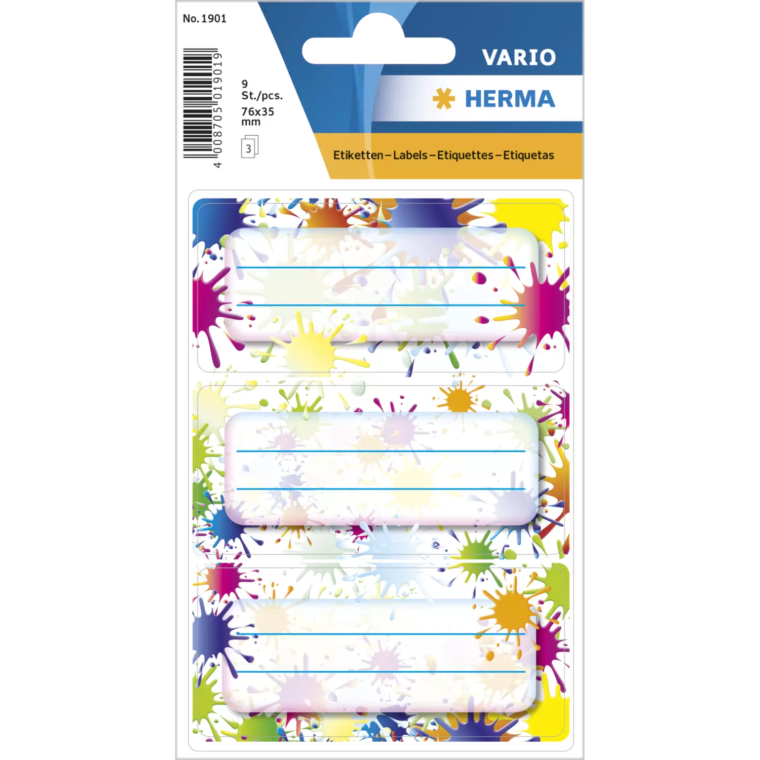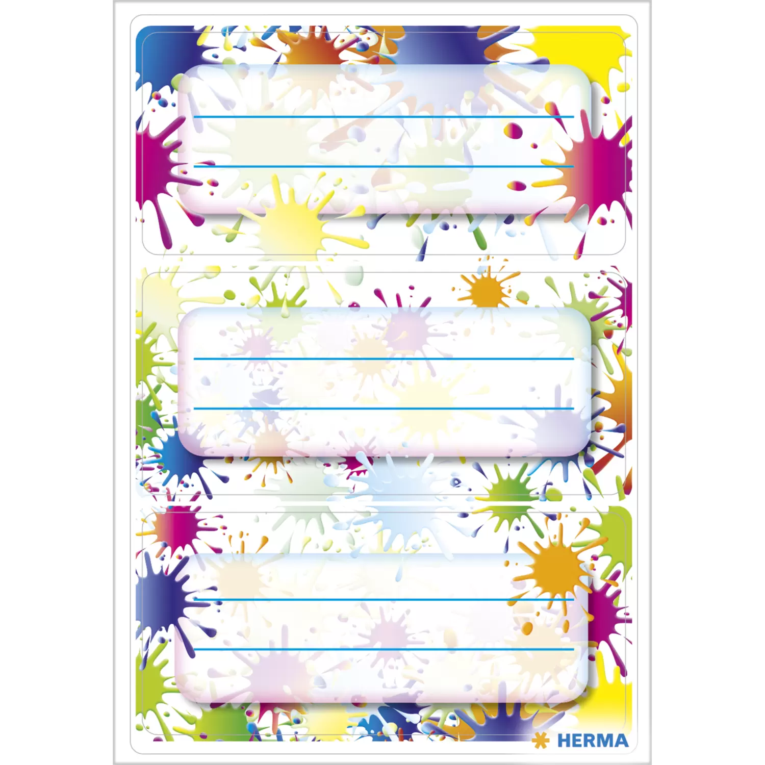 - 9 praktische Schuletiketten mit dem Design "Farbklekse"